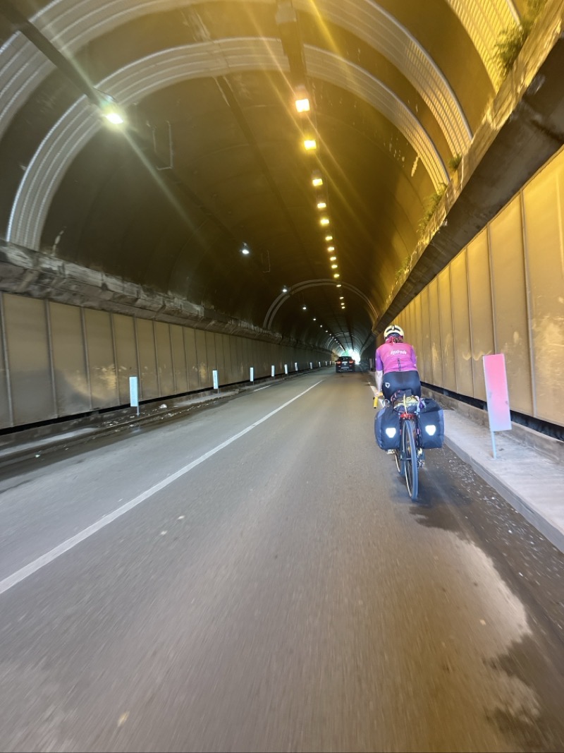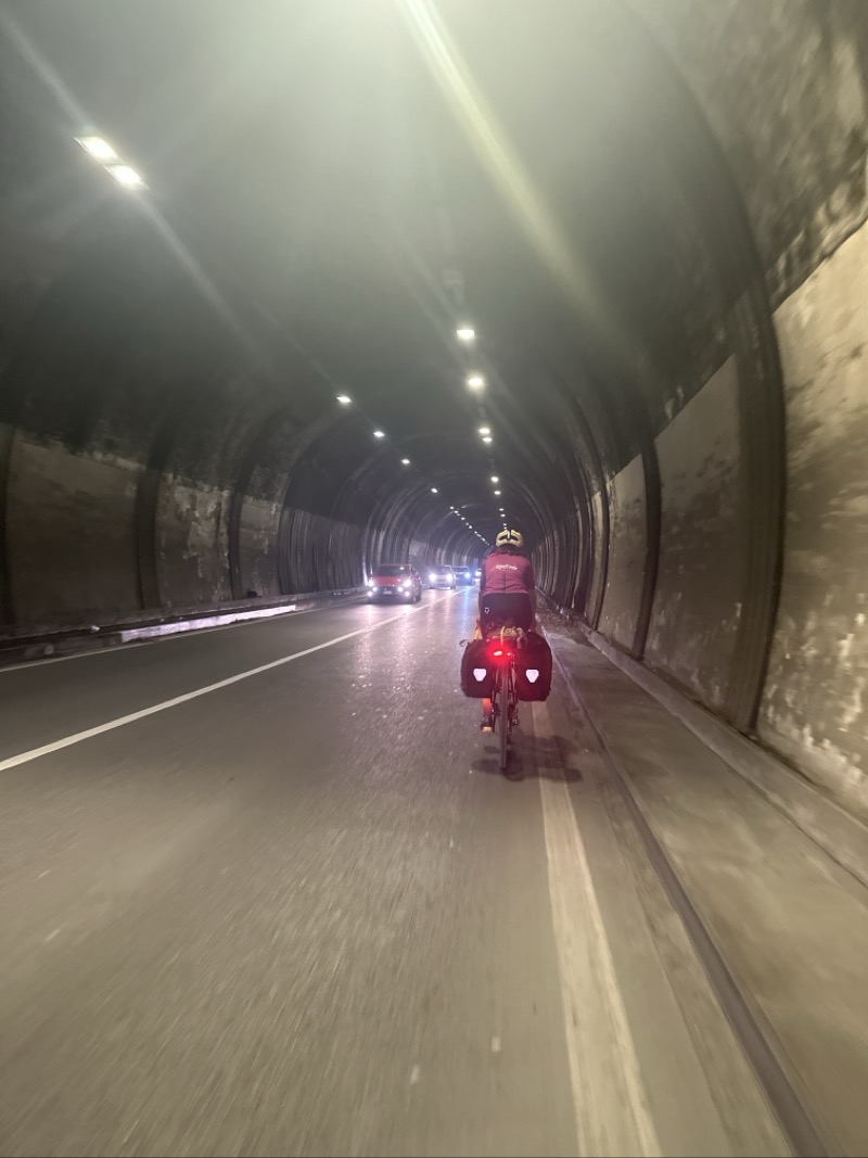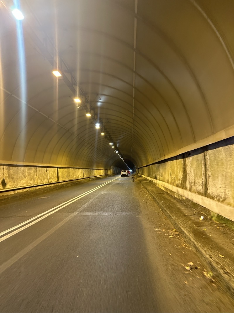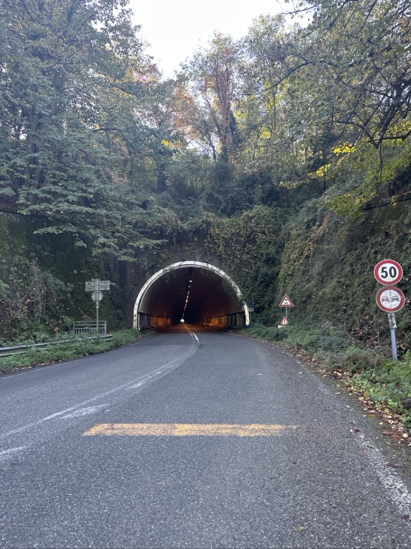 Ein schnurgerader und gut beleuchteter Tunnel führt uns durch den Monte della Madonna (523m)!