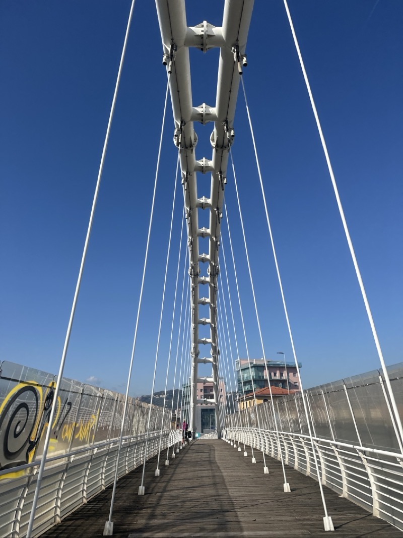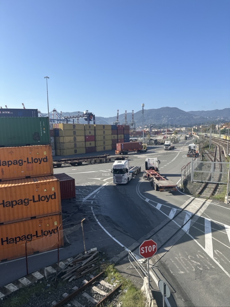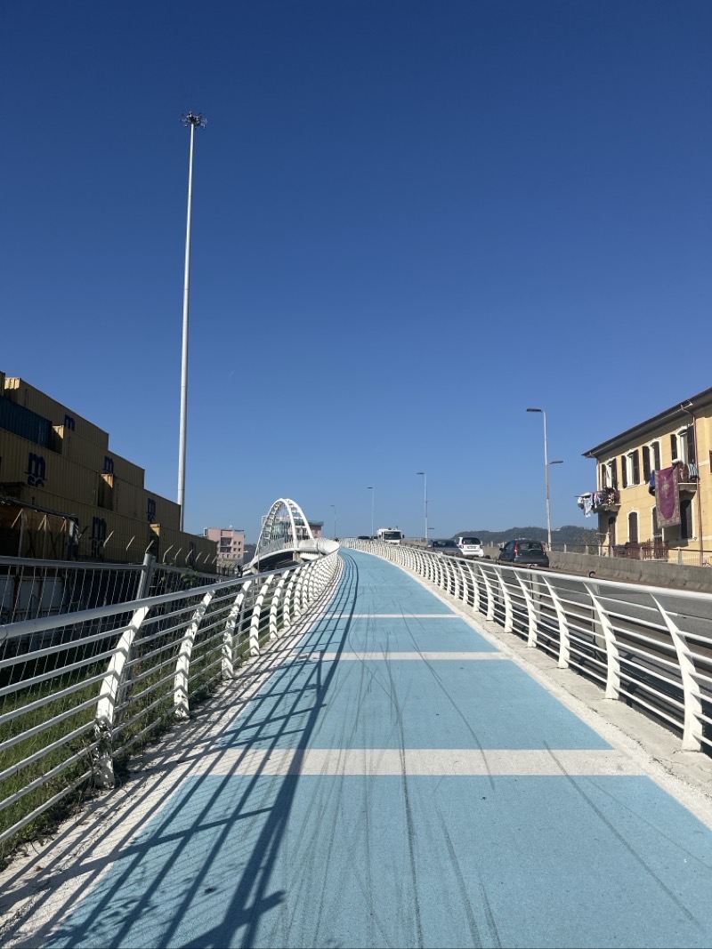 Die Brücke mit Radweg „Linea 6 Levante“ im Containerhafen von La Spezia.