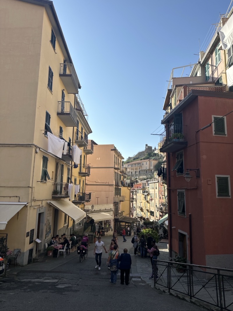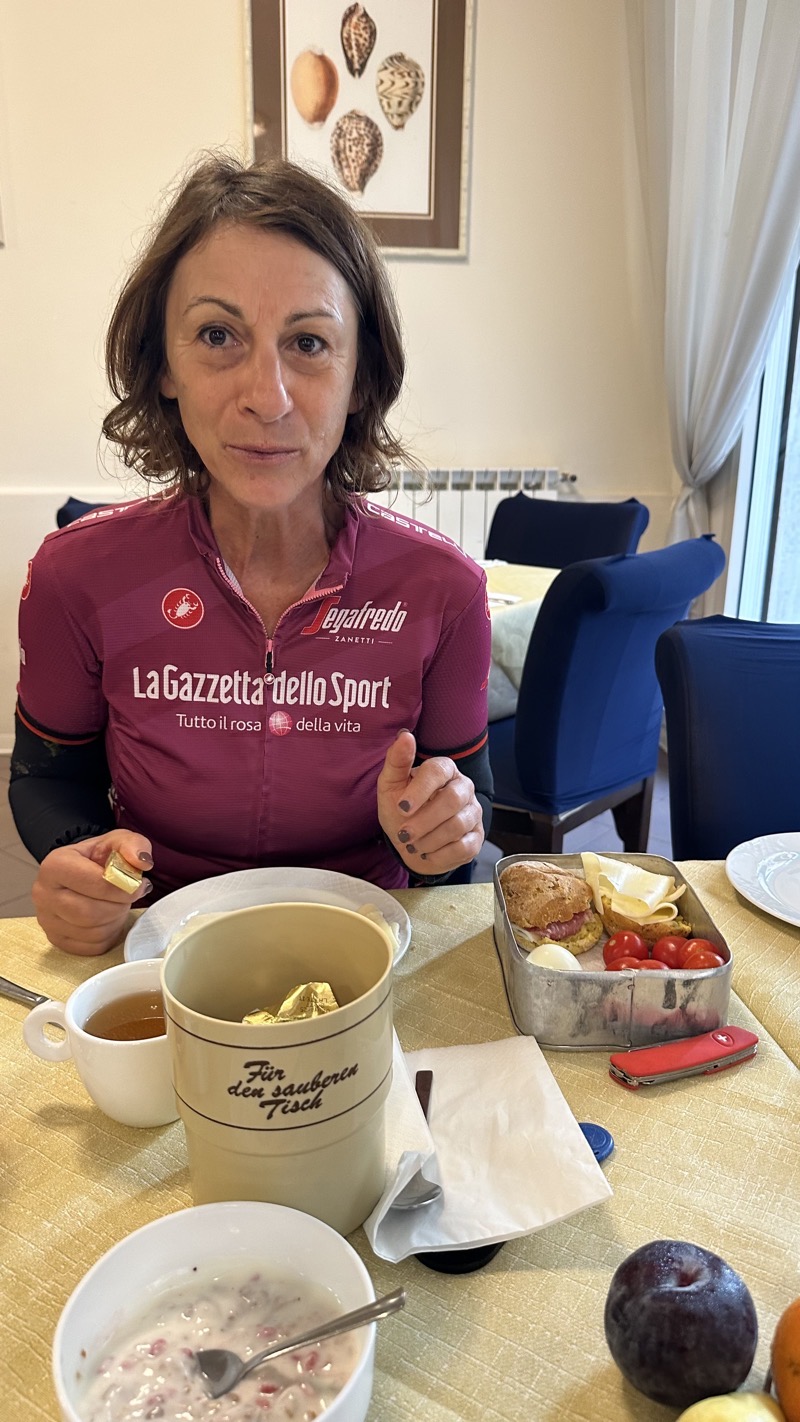 Bei Spritz Aperol und Stuzzichinis buchen wir unser sehr zentral (direkt an der Hauptstraße) gelegenes Zimmer im relativ günstigen Hotel „La Zorza“! Eine verstecktere Lage wäre mit Rad aufgrund der steilen und engen Gässchen mit den vielen Stufen fatal!!! Wir sind einfach solche Glückspilze!!!! Nicht vorzustellen: Der Ort hätte bei dem Andrang von Menschen auch ganz ausgebucht sein können…..