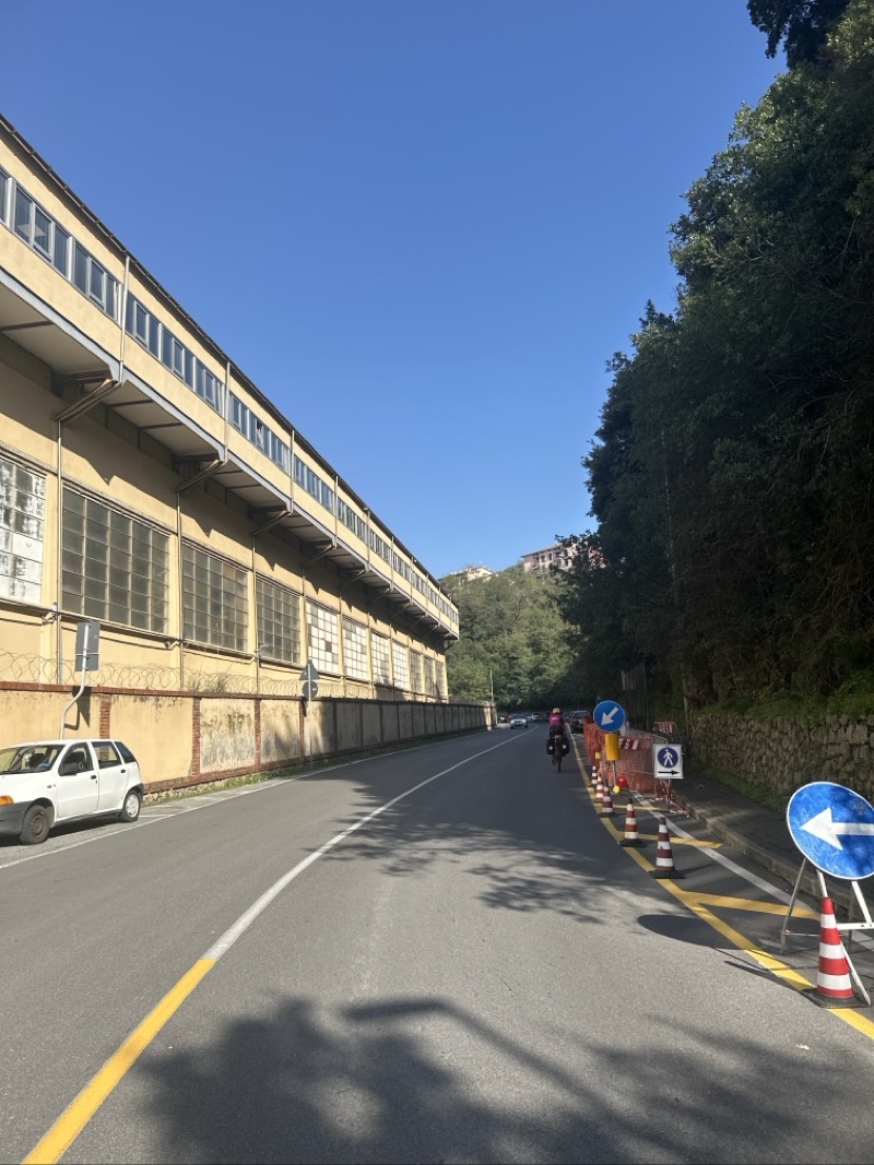 Industriegebiet mit Militärsmarina im südlichen Einzugsgebiet von La Spezia. Die Viale San Bartolomeo ist eher eng, aber die Fahrzeuge fahren mit moderater Geschwindigkeit.