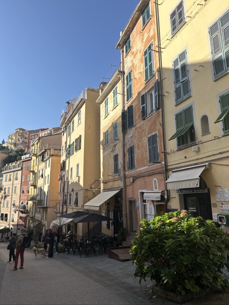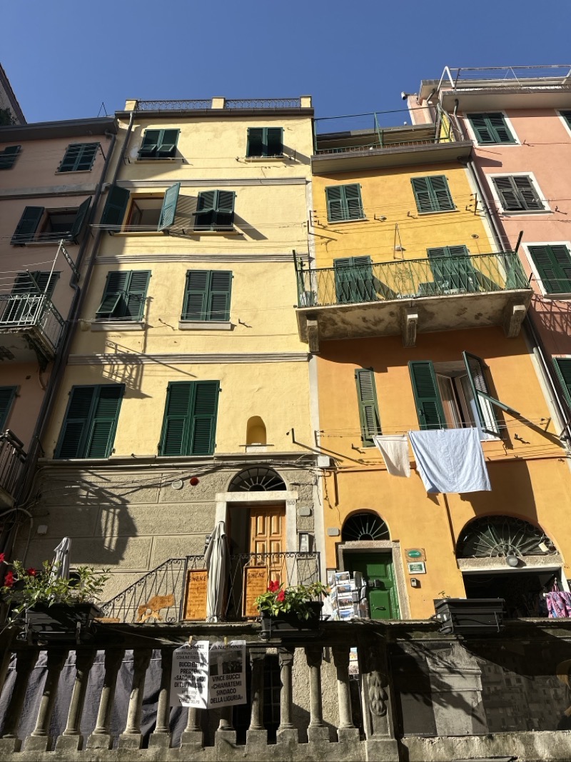 Weil in dem Dörfchen aufgrund der eingezwängten Lage zwischen den Bergen Platzmangel herrscht, wunden die Gebäude in die Höhe gebaut. Sechs bis sieben Stockwerke sind üblich und prägen mit den relativ schmalen bunten Häusern das Ortsbild!