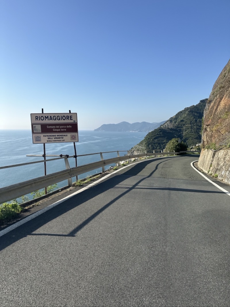 Kurz vor Riomaggiore müssen wir von der Via Litoranea abzweigen und die herrliche Abfahrt über die Via de Gasperi hinunter zum ersten Dorf der Cinque Terre (fünf Dörfer) nehmen. Riomaggiore ist bereits in Sicht!!