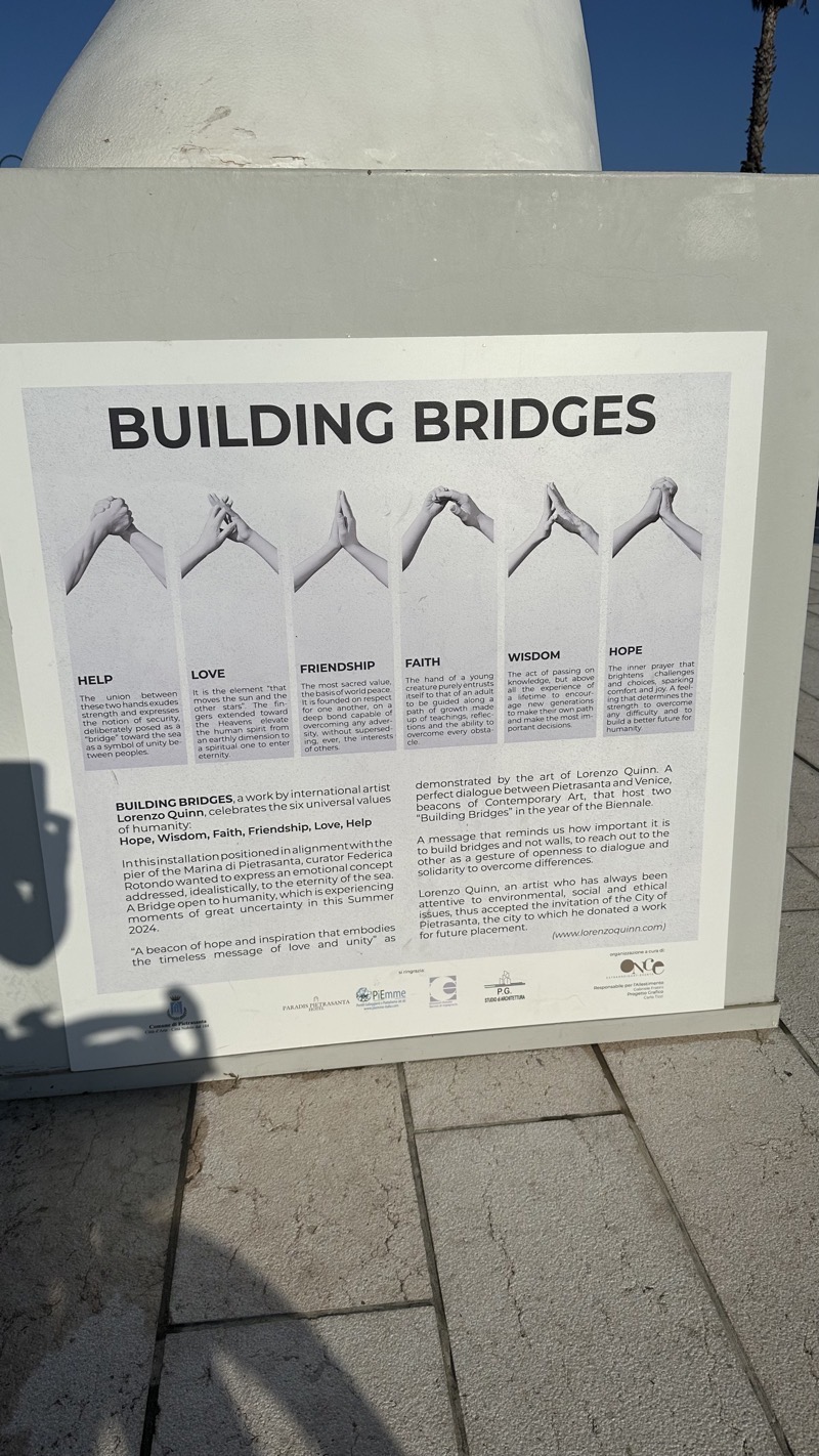 In Marina di Pietrasanta kommen wir bei der eindrucksvollen Installation „Building Bridges“ auf Höhe der Mole vorbei.