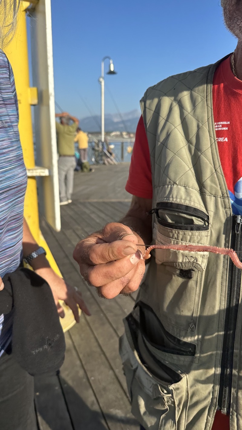 Die Molenplattform wird von einigen Fischern (darunter Angelo) und einer Fischerin (Marinella) aus Pietrasanta bereits genutzt! Ein spezieller Tausendfüßler, der „Rosso coreano“, dient als Fischfutter!