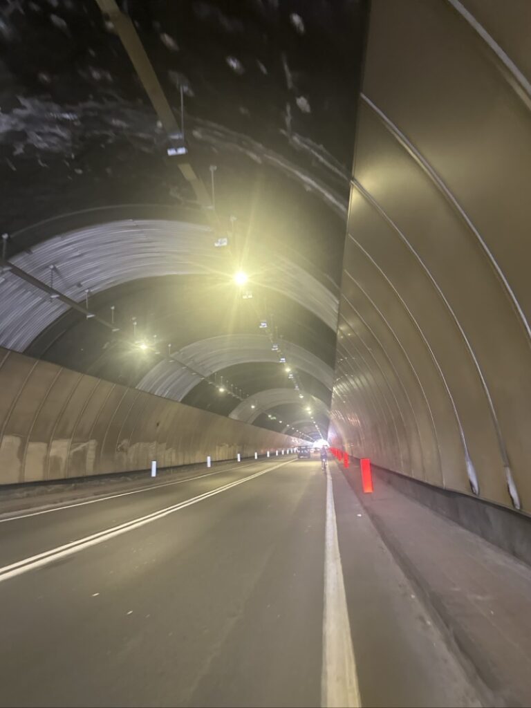 Am Hügel angekommen, erscheint vor unseren Augen ein schreckliches Ungetüm! Eine dunkle, schmale Röhre mit sehr viel Verkehr, der nicht gerade langsam in Richtung Frankreich rollt! Sollen wir so kurz vor unserem Ziel aufgeben? Nein, das kommt nicht in Frage, für Harald sowieso nicht und für mich auch nicht. Lichter an und durch, lautet die Devise. In diesem Tunnel habe ich zum ersten Mal in einem Tunnel in Italien richtig Angst!