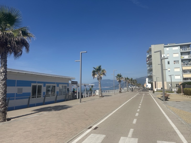 In Ospedaletti Ligure ist der Radweg leider zu Ende und wir finden uns auf der altbekannten Via Aurelia Ponente wieder, die allerdings bald anders benannt wird, nämlich Via Madonna della Ruota und ab der Ortschaft Arziglia Via Arziglia.