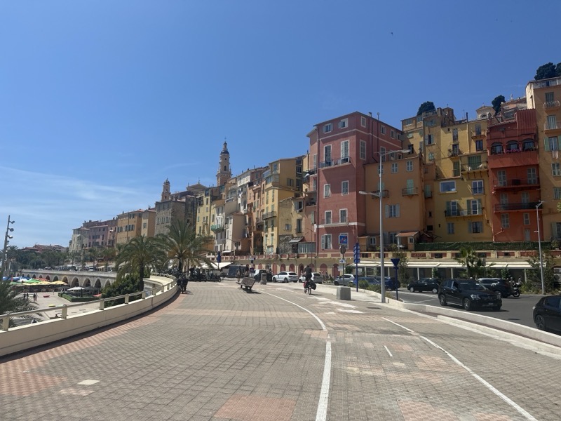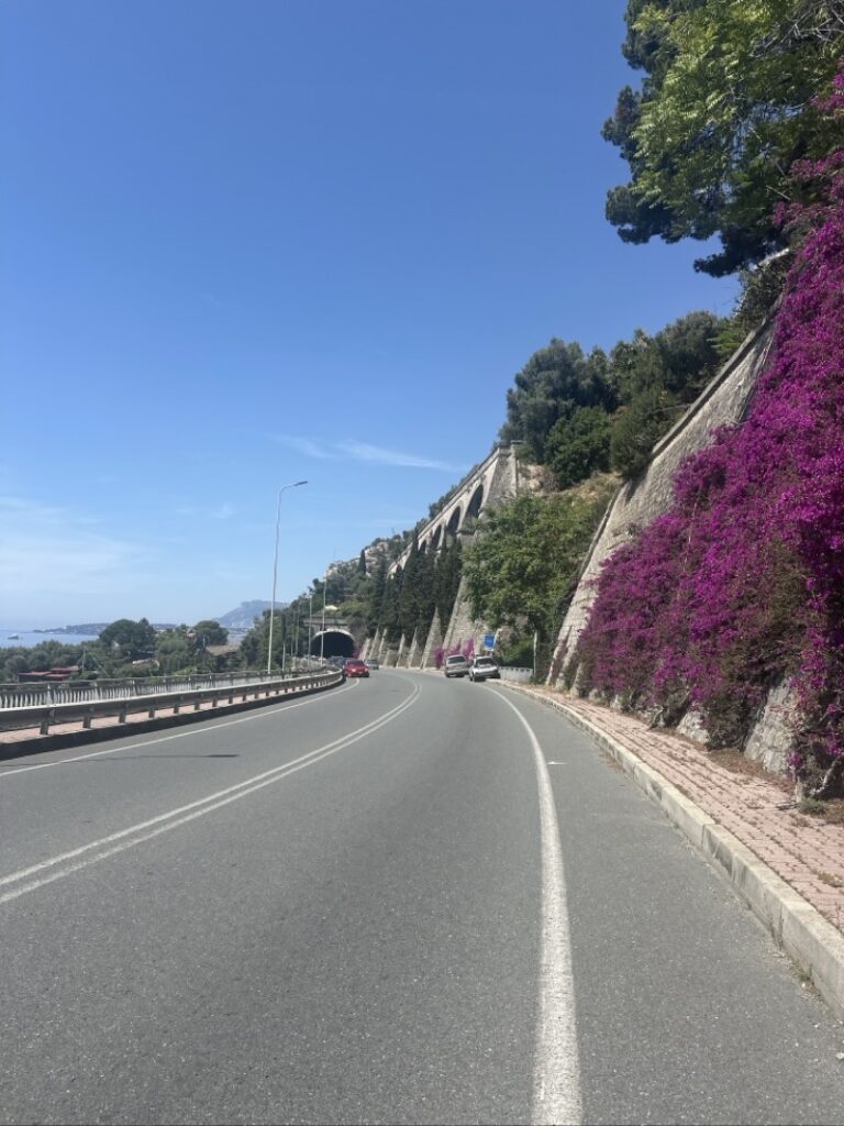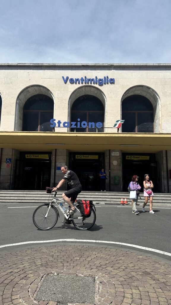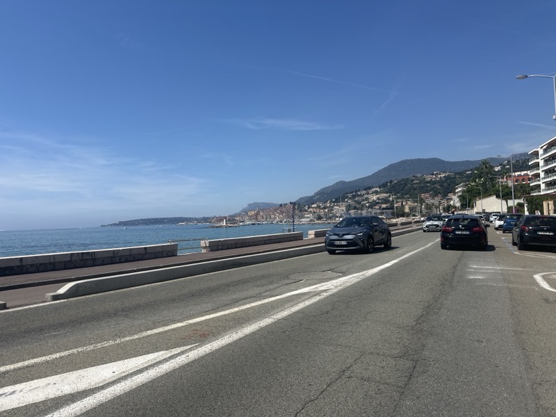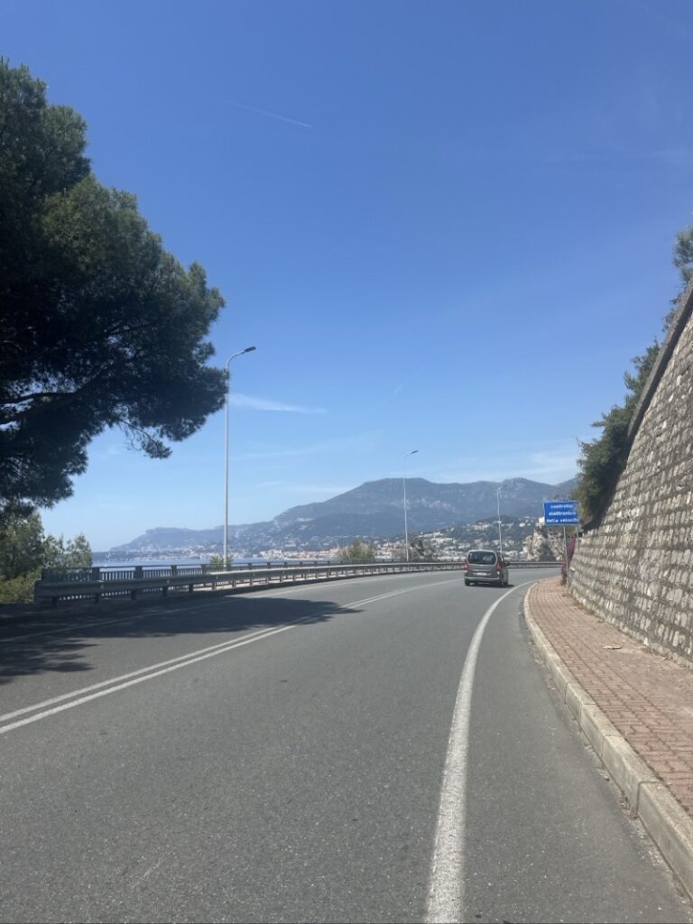 Sehr zu unserem Bedauern müssen wir, um zur Grenze nach Frankreich zu gelangen, zuerst auf der verkehrsreichen Via Francia einen langgezogenen Hügel bezwingen. Hier beginnt mein einzig schwerwiegender Navigationsfehler der gesamten Tour um den Stiefel! Wir hätten uns viel Leid, Plage und Angst erspart, wären wir einfach über den Corso Verdi im Süden an Ventimiglia vorbeigefahren!! Und das Schlimmste daran ist: Ich realisiere diesen Fehler erst in diesem Moment, da ich diese Zeilen schreibe – fünf Monate danach!!