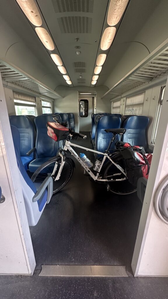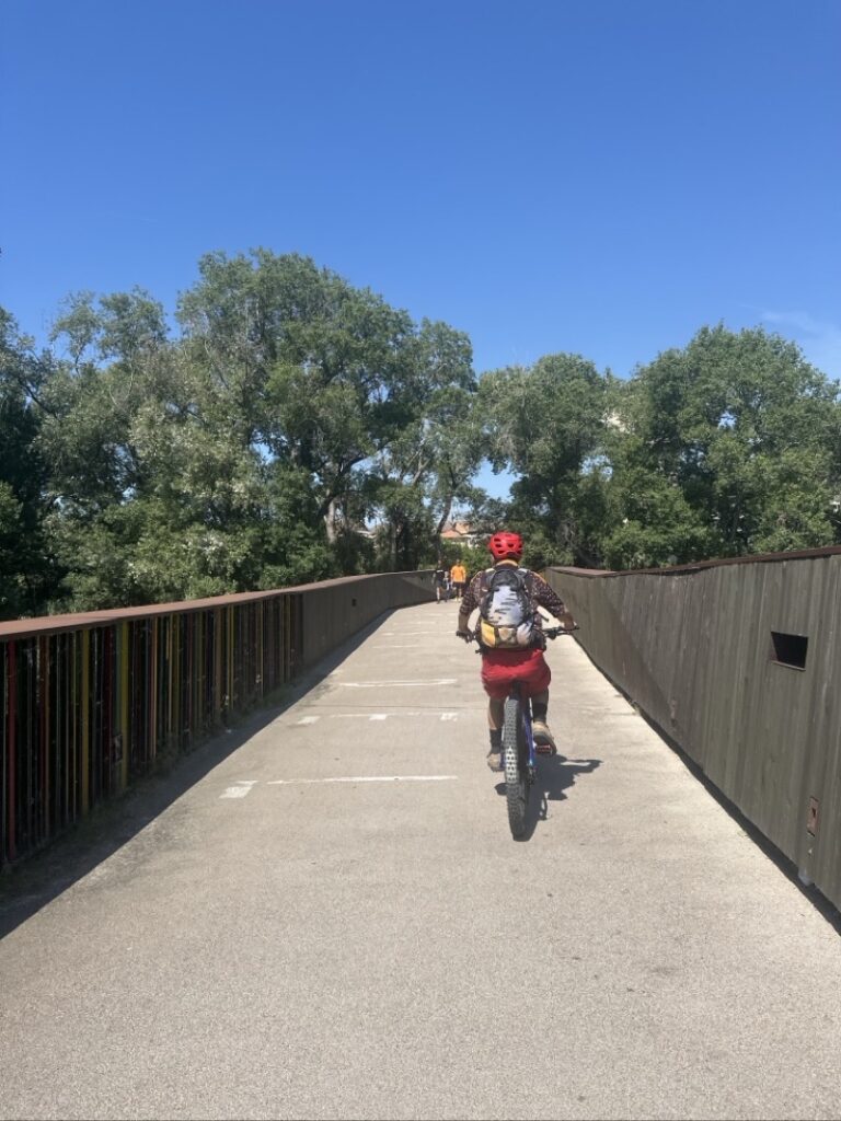 Erleichtert darüber, den Tunnel heil überstanden zu haben, treten wir, ohne genauer zu schauen, der Komoot-Route entlang, immer Richtung Francia!