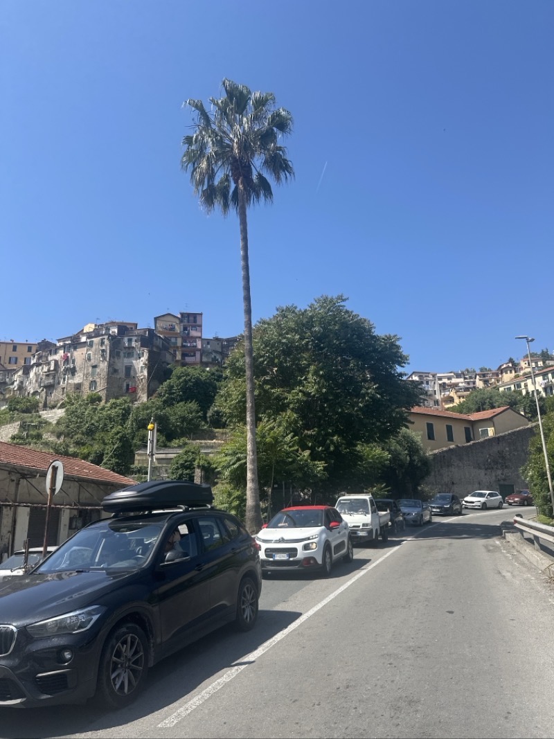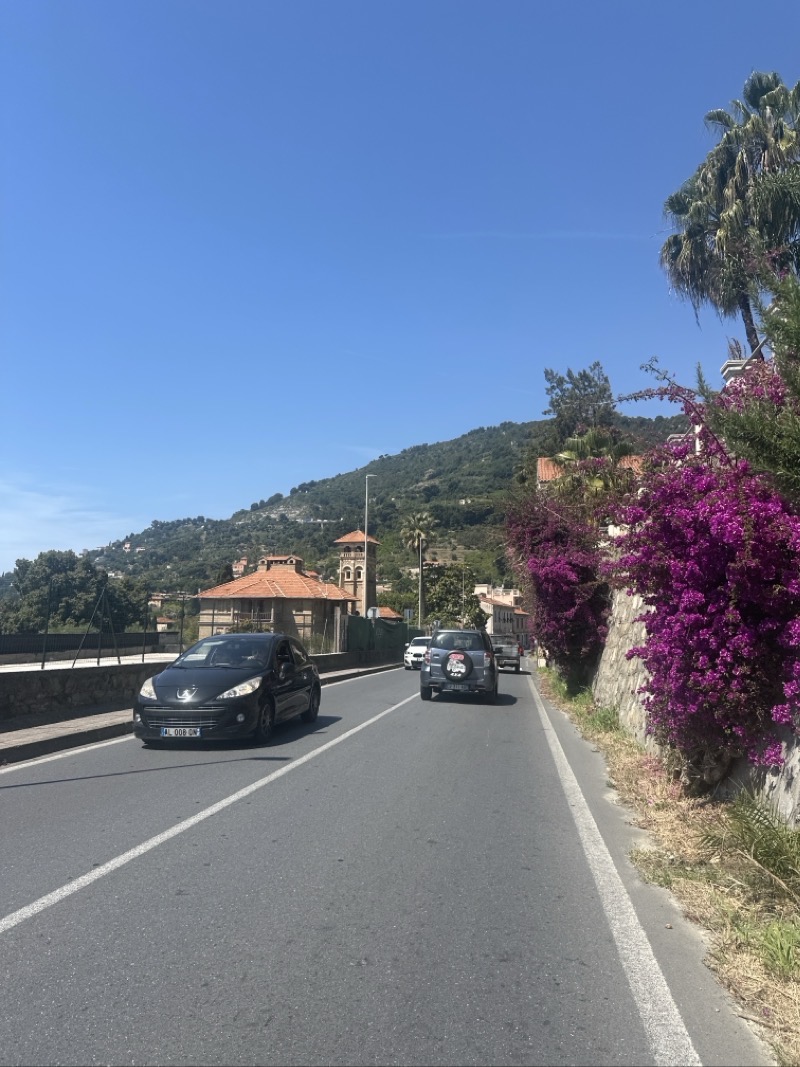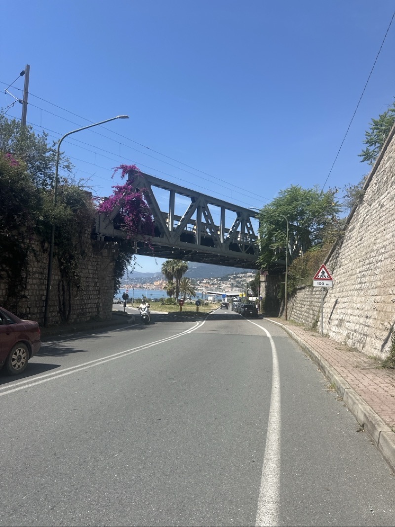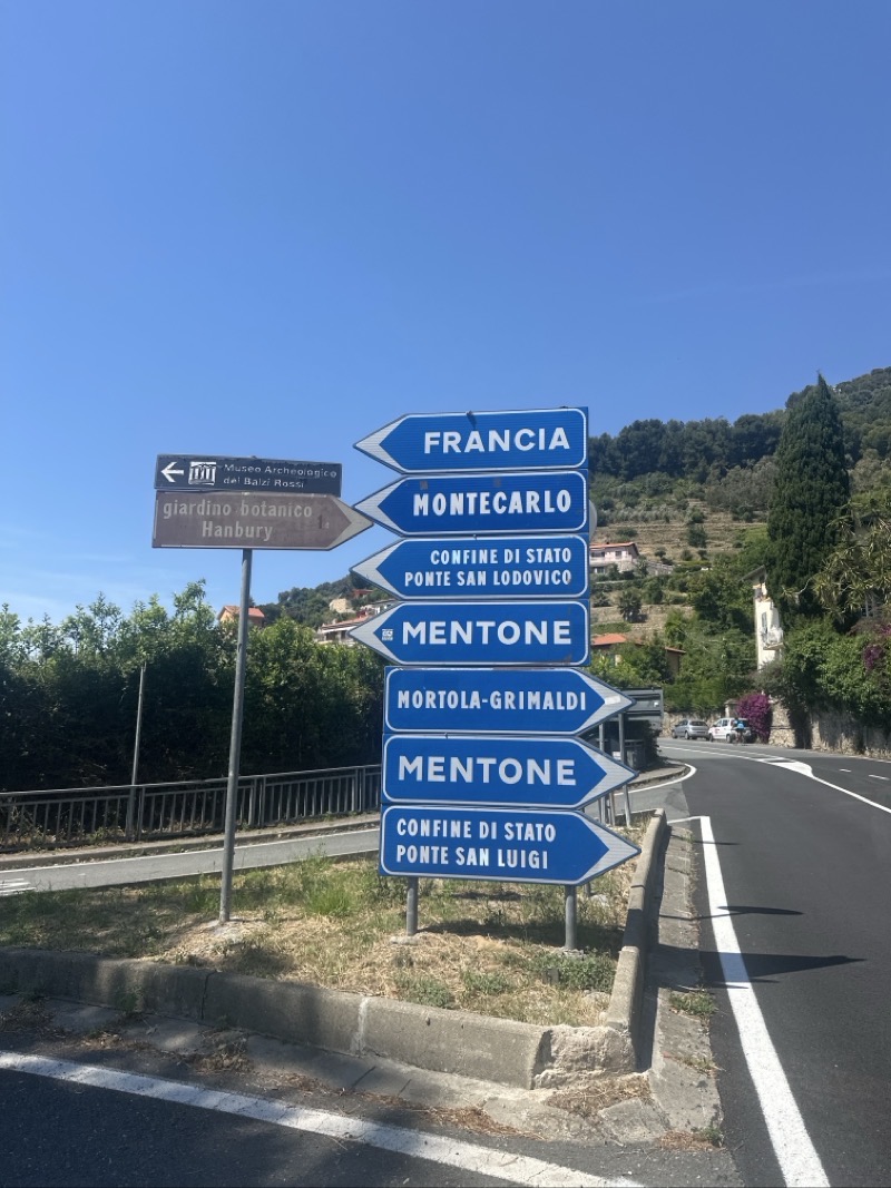 Sehr zu unserem Bedauern müssen wir, um zur Grenze nach Frankreich zu gelangen, zuerst auf der verkehrsreichen Via Francia einen langgezogenen Hügel bezwingen. Hier beginnt mein einzig schwerwiegender Navigationsfehler der gesamten Tour um den Stiefel! Wir hätten uns viel Leid, Plage und Angst erspart, wären wir einfach über den Corso Verdi im Süden an Ventimiglia vorbeigefahren!! Und das Schlimmste daran ist: Ich realisiere diesen Fehler erst in diesem Moment, da ich diese Zeilen schreibe – fünf Monate danach!!