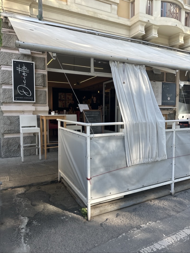 Am Promenadenradweg von Bordighera und Vallecrosia halten wir Ausschau nach einem lauschigen Lokal und einem geeigneten Badestrand. Wir waren bis jetzt noch kein einziges Mal im Meer!!!