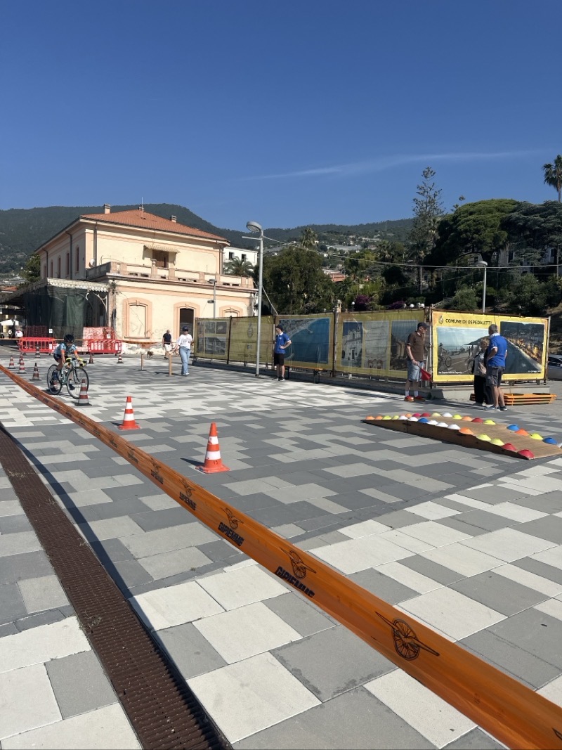 Die Italiener sind, wie man weiß, begeisterte Radfahrer! Am alten Bahnhof von Ospedaletti Ligure trifft sich der mit top Rennrädern ausgestattete Nachwuchs zu einem Geschicklichkeits-Rennen!