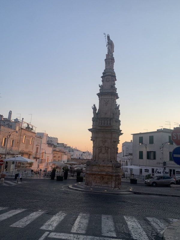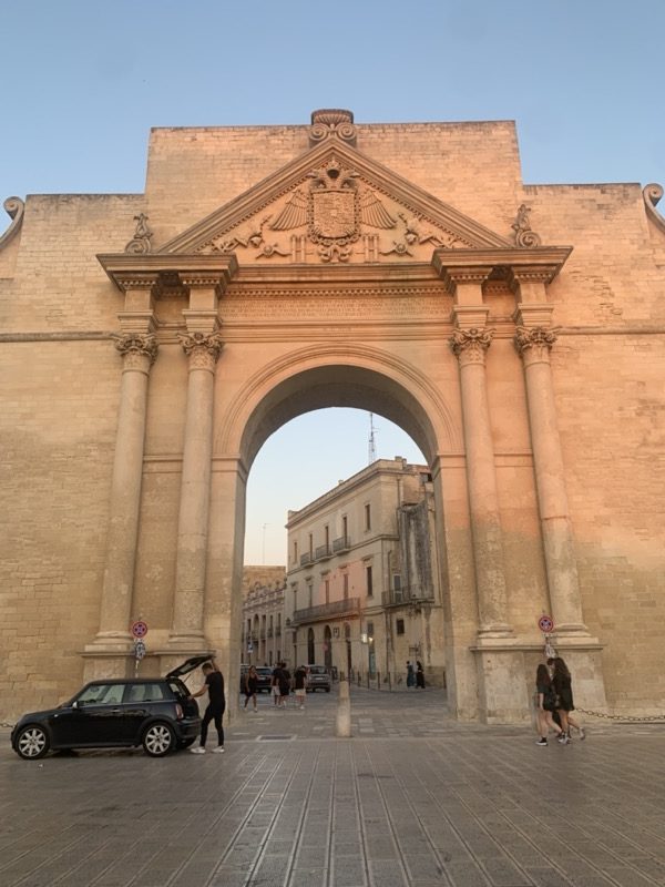 Durch Zufall stoßen wir noch einmal auf die „Porta Napoli“ mit dem nicht weit entfernten Obelisken, der 1822 von Luigi Cipolla errichtet und vom Salentiner Bildhauer Vito Carluccio zu Ehren von Ferdinand I. von Bourbon zuvor entworfen wurde (https://www.zonzofox.com/de/lecce/was-zu-sehen/erkunden/attraktionen/obelisco).