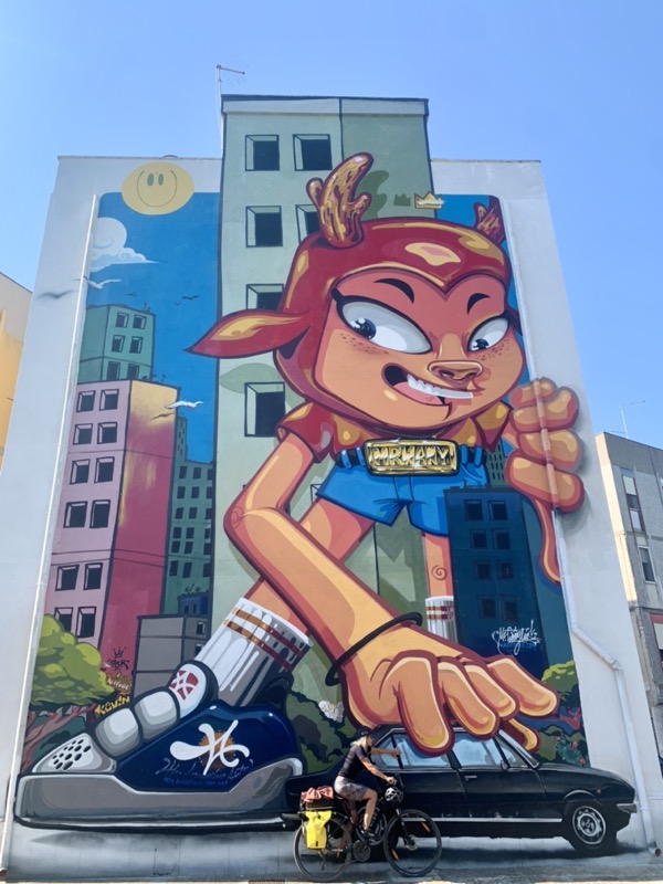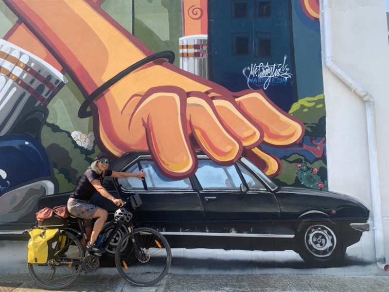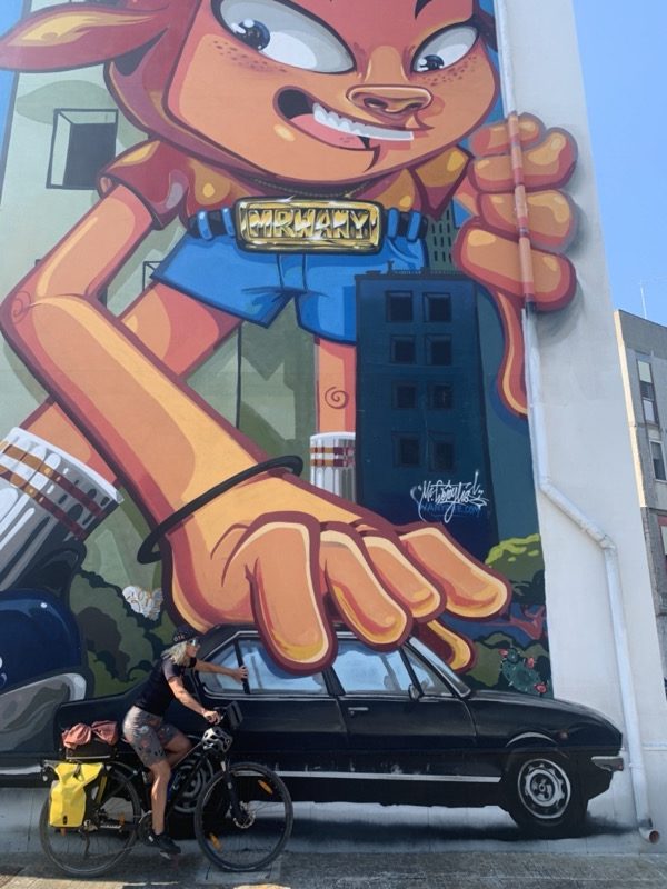 In dem eher ärmlich wirkenden Viertel schießen wir ein paar coole Fotos vor einer Hausmauer mit Graffiti und…