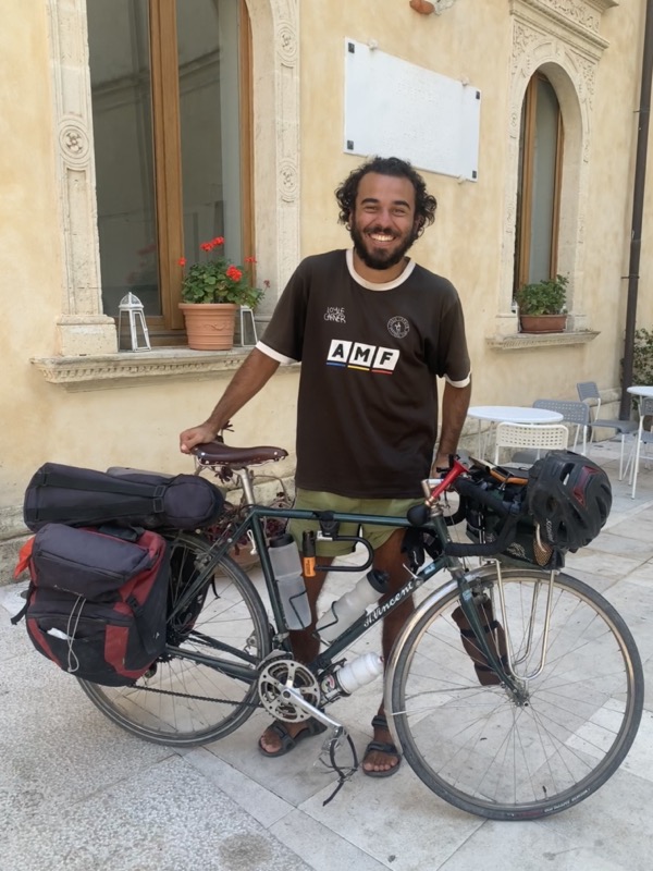 In der Nähe der berühmten römischen Säulen, die als Ende der Via Appia und Tor zum Orient errichtet wurden, lernen wir Nicola (23) aus Paris kennen. Er ist schon vier Monate durch die Türkei und Albanien gereist und gerade aus Griechenland mit der Fähre angekommen. Wir treffen uns mit ihm in einem netten Caffe im Innenhof eines Universitätsgebäudes, in dem auch eine Ausstellung zu besichtigen ist..