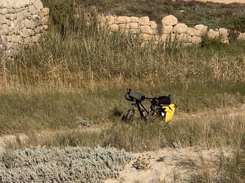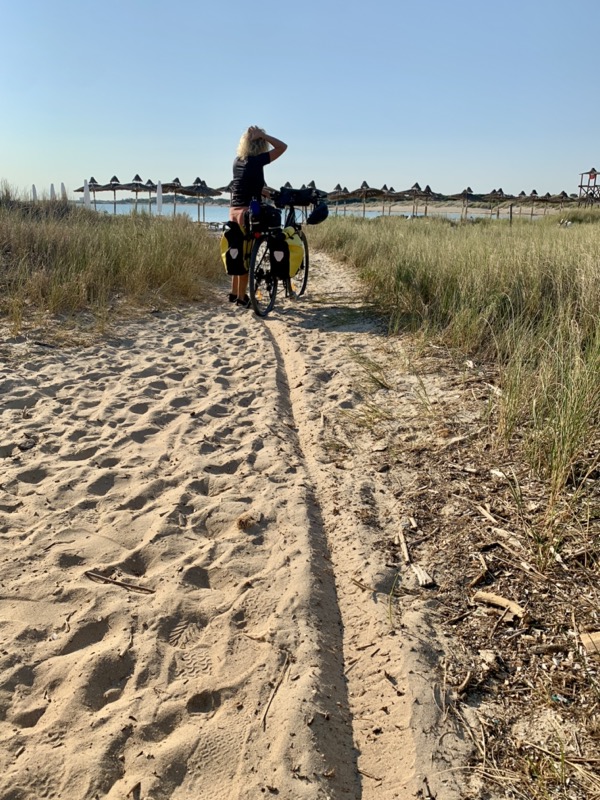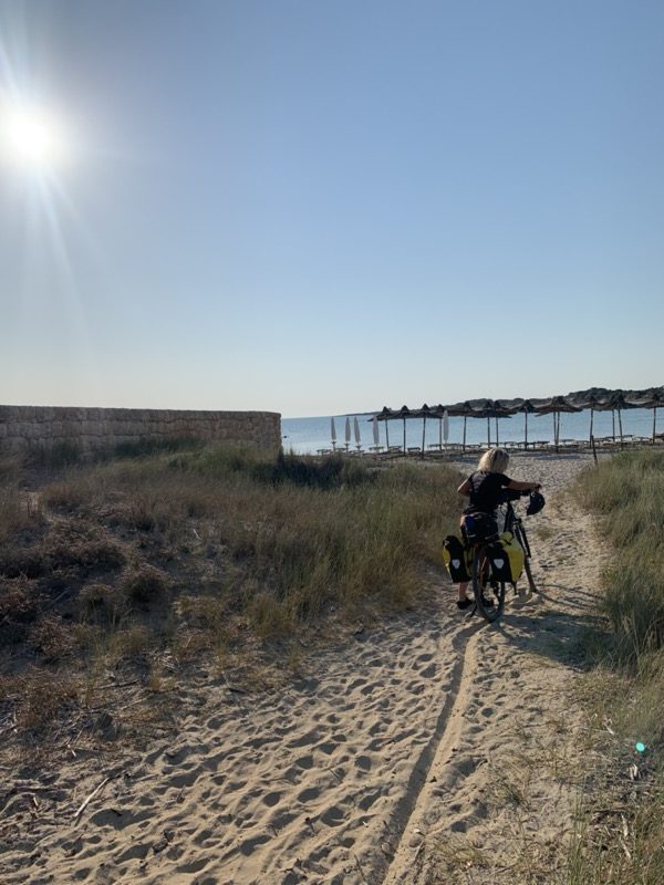 Der Naturpark Torre Guaceto ist laut Claudia wunderschön und wir statten ihm einen Besuch ab. Für Wanderer ist das Gebiet bestimmt herrlich, aber mit dem Rad zu beschwerlich aufgrund der vorwiegend vorherrschenden Sandpisten… Das wollen wir uns diesmal nicht antun! (Dejavu – siehe Etappe 6, 2. Tag, Lago di Lesina…)