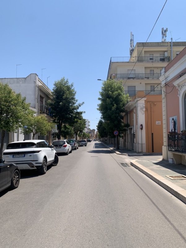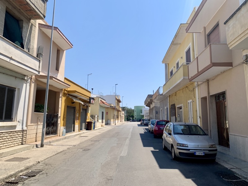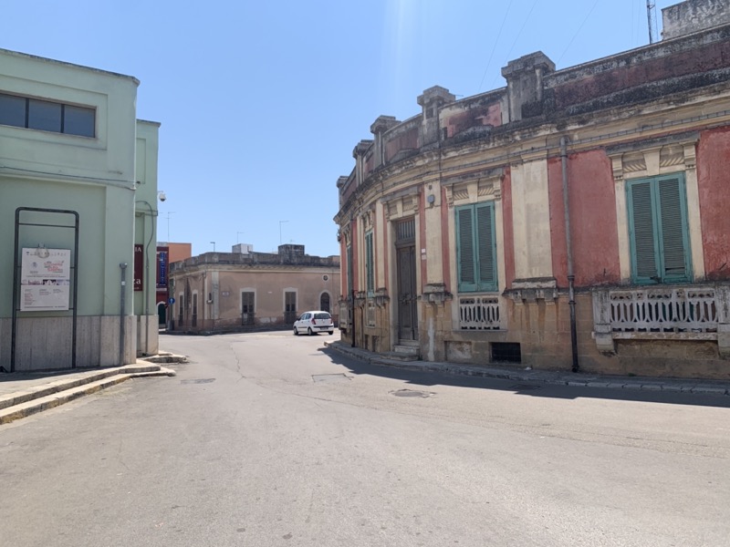 Bis Lecce durchqueren wir drei kleine Ortschaften, die in etwa alle gleich aussehen. Ein- bis zweistöckige Gebäude, geschlossene Fensterbalken und keine Menschenseele auf der Straße. Hier: San Pietro Vernotico.