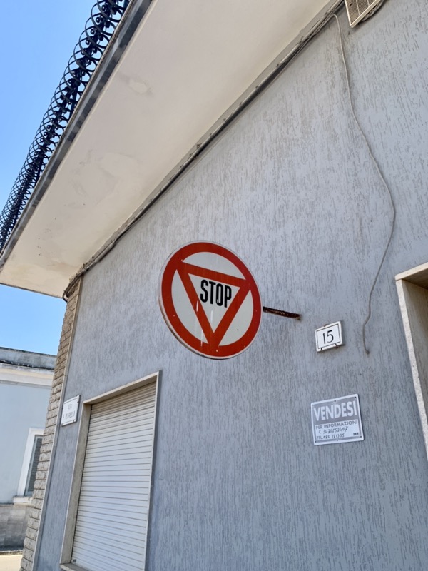 In Squinzano entdeckt Harald ein Stop-Schild aus den 70-er Jahren… Hier scheint die Zeit stehen geblieben zu sein…