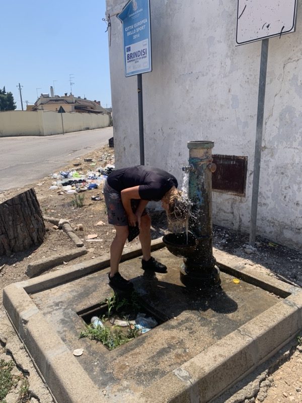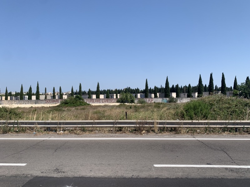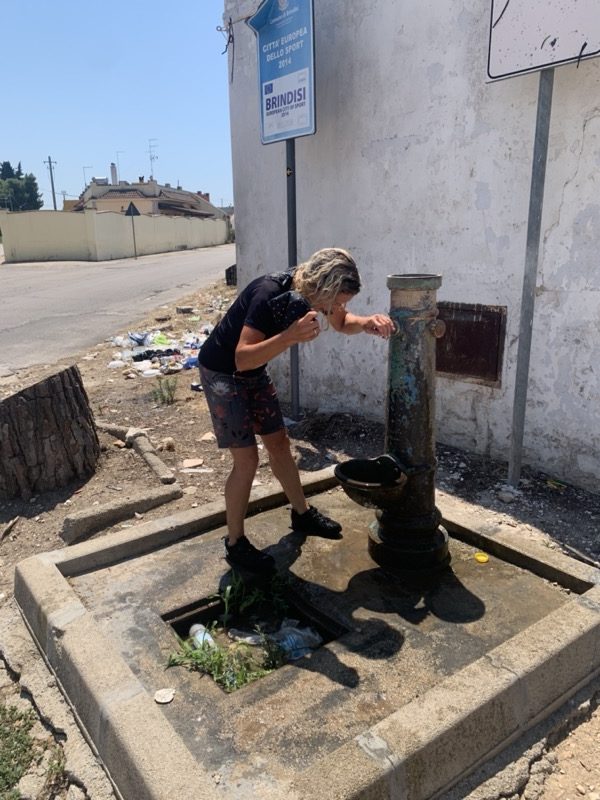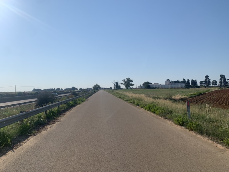 Die einsame und schnurgerade „Strada per Tuturano“ führt uns in das gleichnamige Kaff, wo wir Gott sei Dank einen Trinkbrunnen finden und ….