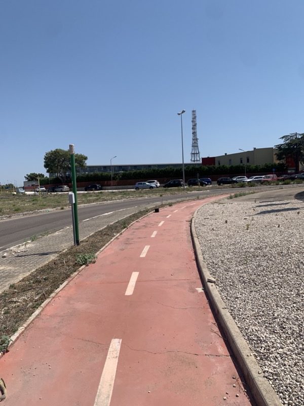 Parallel zur Schnellstraße führt uns der Radweg aus dem „Riserva Naturale e Statale di Torre Guaceto“ hinaus.