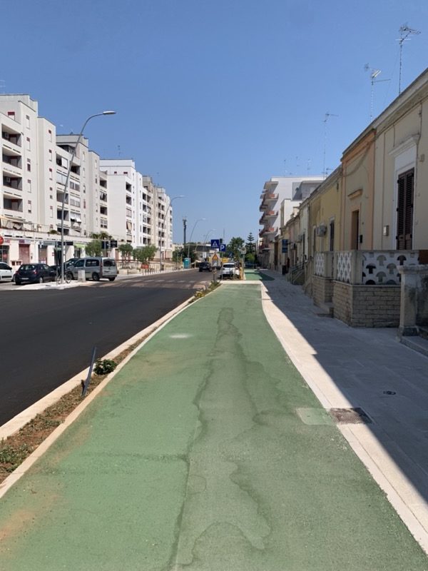 Noch vor der Überquerung des Canale Reale wechselt der Radweg durch eine Unterführung auf die andere Seite der Bundesstraße/Statale „Egnazia e delle Terme di Torre Cannes“ und wird zur schön asphaltierten, kurvenlosen Straße.