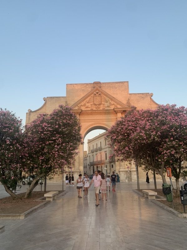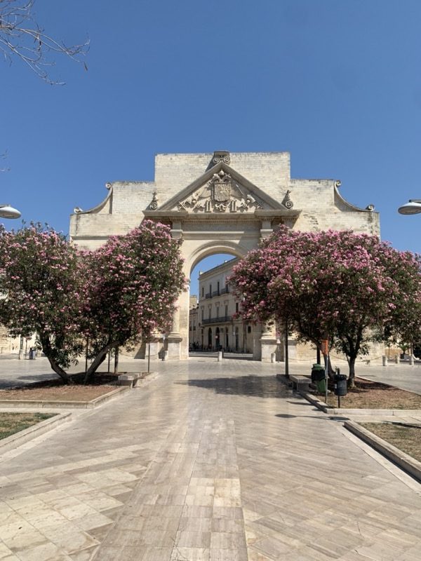 Über die von Oleanderbäumen gesäumte Piazza Angelo Rizzo gelangen wir durch das imposante Stadttor „Porta Napoli“ in die Altstadt von Lecce.