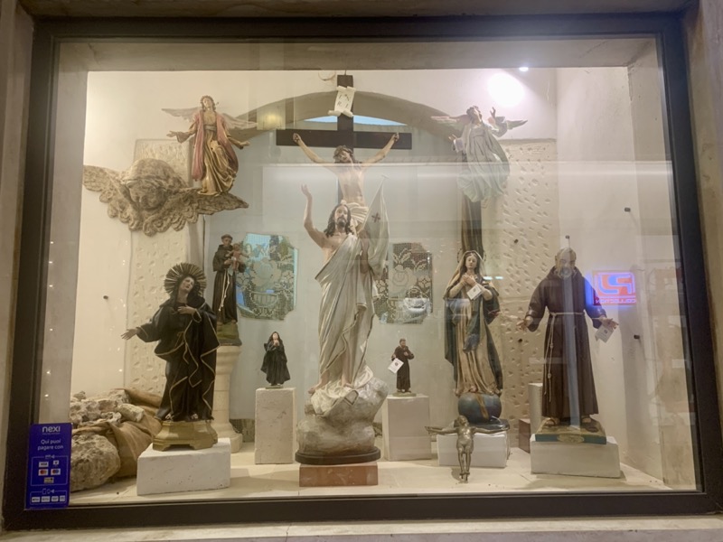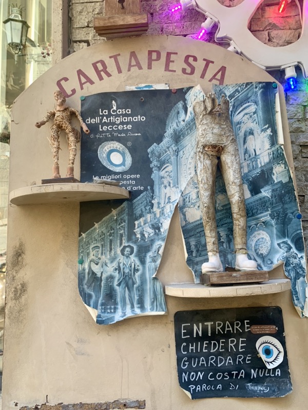 Lecce ist nicht nur die Stadt des Barocks, sondern auch des Papier-Machés (ital.: Cartapesta)… Hier werden Krippen- und Heiligenfiguren aus diesem Material hergestellt.