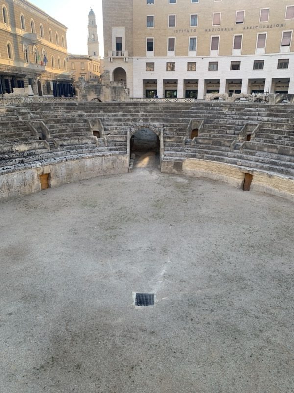 Am frühen Abend überqueren wir zunächst di Piazza Sant’Oronzo und machen beim römischen Amphitheater Halt.