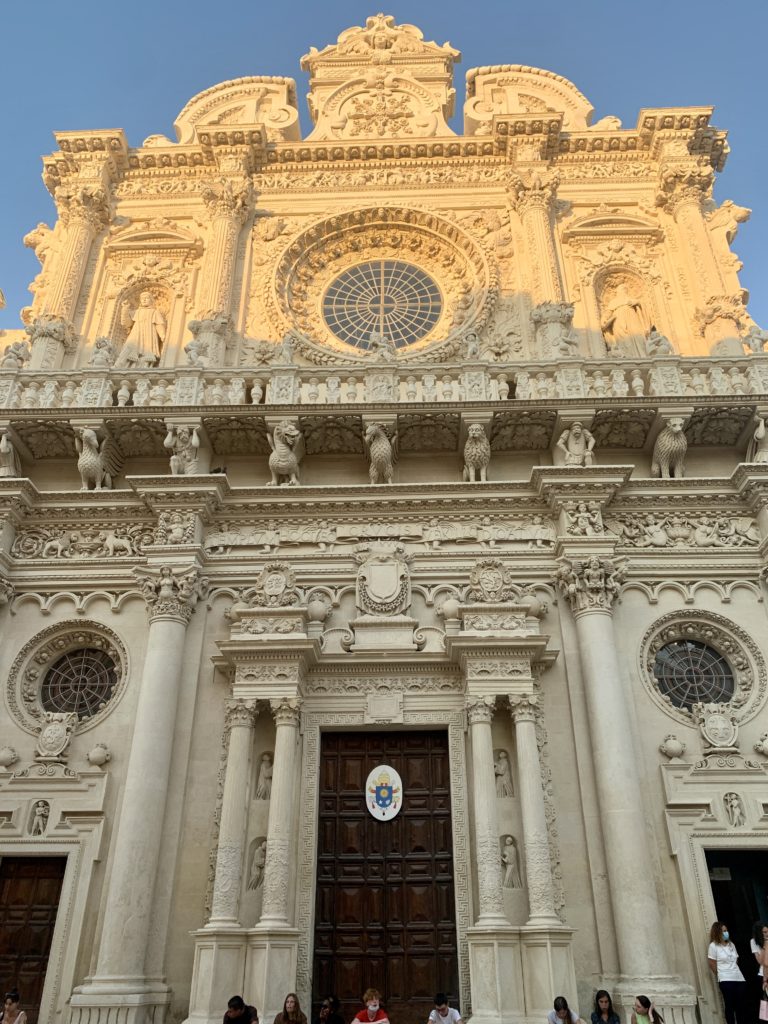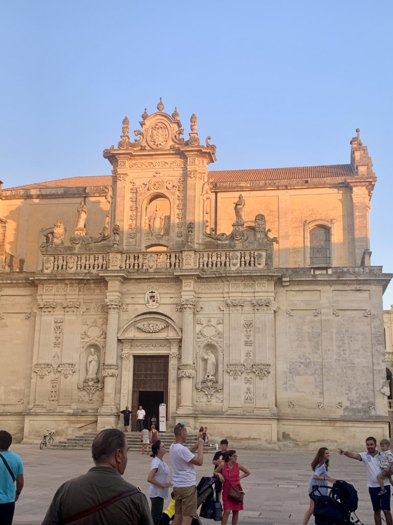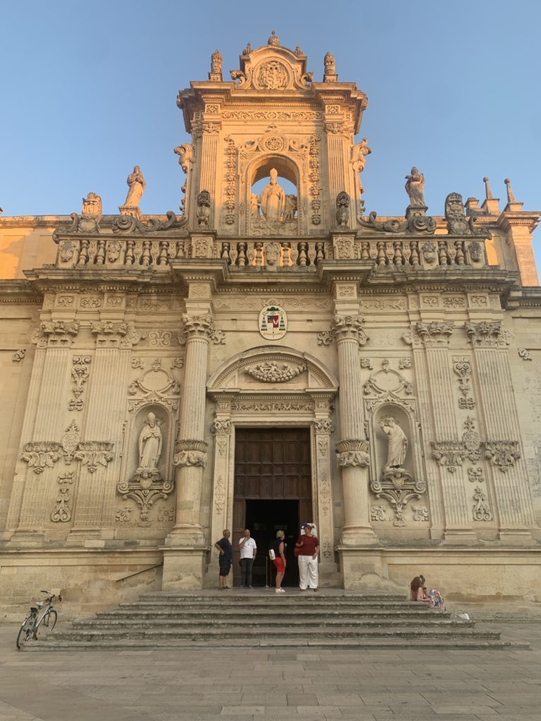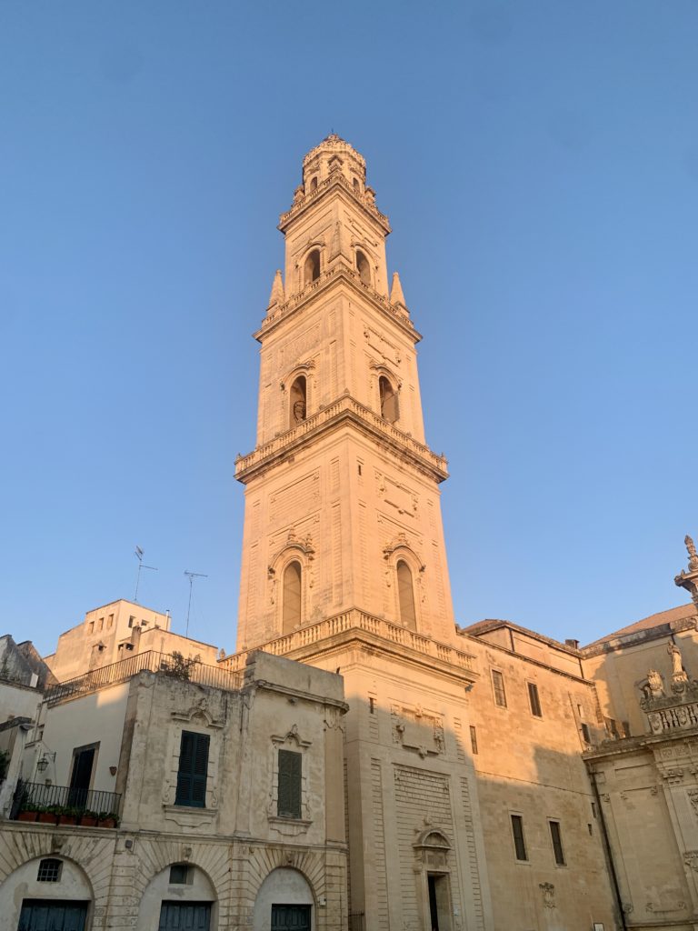 Die Kathedrale ist ein typisches Beispiel für den barocken Baustil in der Provinz Lecce. Eigentlich würden wir gerne auf den Kampanile steigen, um die Sonnenuntergangsstimmung über Lecce zu bewundern, aber unsere Beine machen da heute leider nicht mehr mit…