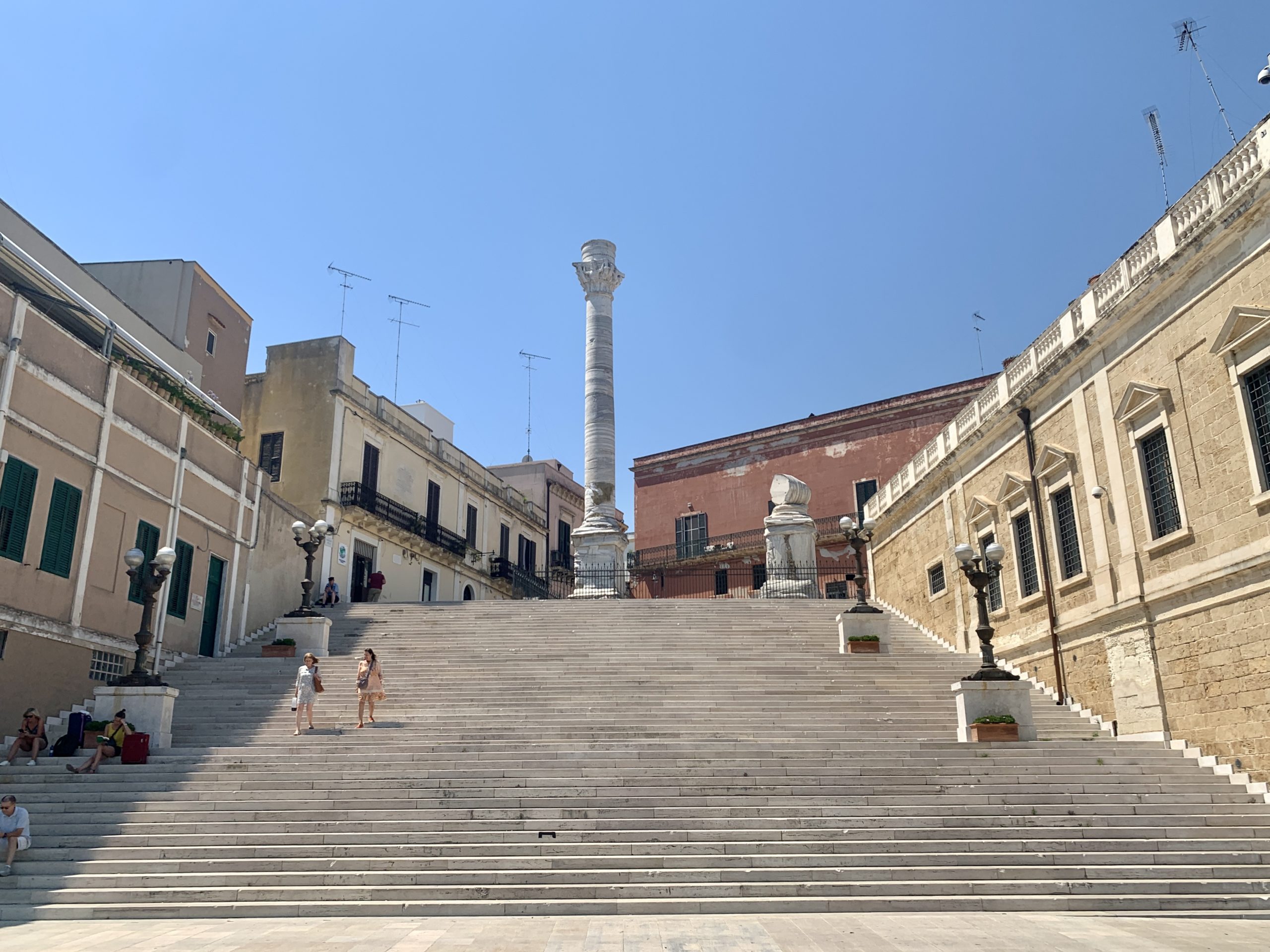 Brindisi ist eine äußerst sehenswerte Stadt mit einer jahrtausendelangen Geschichte. Hier im Überblick aus: https://de.wikipedia.org/wiki/Brindisi