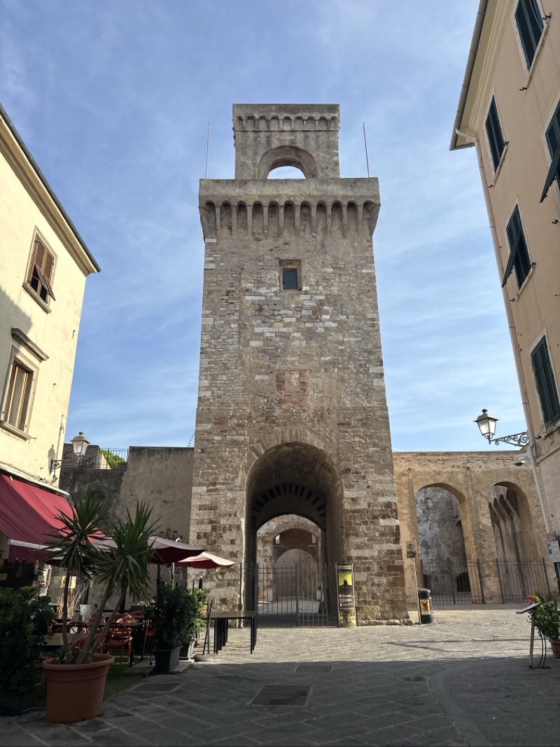 Der Torrione, auch bekannt als Torre di Sant’Antonio oder Porta Inferi, ist der älteste Teil des Festungskomplexes. Er stammt aus dem Jahr 1212, als Piombino eine freie Kommune war. Dieses hohe Bauwerk diente als monumentales Stadttor, bekannt als Porta a Terra. Im 15. Jahrhundert wurde das Tor zugemauert und der Turm verwandelte sich in einen imposanten Wächter über die Stadt. Leonardo da Vinci, der berühmte Renaissance-Universalgelehrte, spielte eine bedeutende Rolle bei den Befestigungen von Piombino. Während seiner Besuche Anfang des 16. Jahrhunderts führte er umfangreiche Renovierungen und Verbesserungen an den Verteidigungsanlagen der Stadt durch. Zu seinen Beiträgen gehörten der Bau neuer äußerer Gräben und eines zusätzlichen Turms am Schloss von Piombino. Die von ihm bearbeiteten Befestigungen wurden als Mura Leonardesche bekannt, ein Name, der bis heute historische Bedeutung hat. Der Torrione steht stolz als Symbol von Piombinos mittelalterlicher Vergangenheit. Dieser hohe Turm, der auch als Stadttor diente, war wahrscheinlich in seinem obersten Teil mit Glocken ausgestattet, die bei besonderen Anlässen oder zur Warnung vor Gefahren geläutet wurden. Anfang des 15. Jahrhunderts wurden dem Bauwerk ein quadratischer Platz und ein äußeres Tor hinzugefügt. Heute kann man noch eine Tafel aus dem Jahr 1417 sehen, die diesen bedeutenden Anbau markiert. Die robuste Bauweise und die strategische Lage des Turms machten ihn zu einem wichtigen Teil der Verteidigungsanlagen der Stadt. Seine dicken Mauern und die erhöhte Position boten einen beeindruckenden Schutz gegen Eindringlinge. Wenn ihr unter dem hohen Torbogen steht, könnt ihr fast die Echos der Geschichte durch die Jahrhunderte hören (https://www.mycityhunt.at/standorte/piombino-it-11203/poi/torrione-e-rivellino-45120).