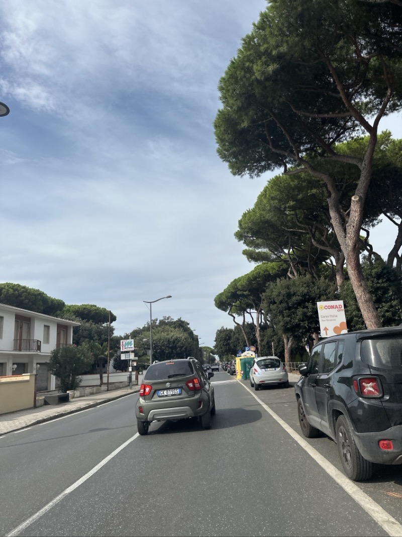 Auf der Via del Littorale ist Gott sei Dank nur in der Gegenrichtung viel Verkehr.