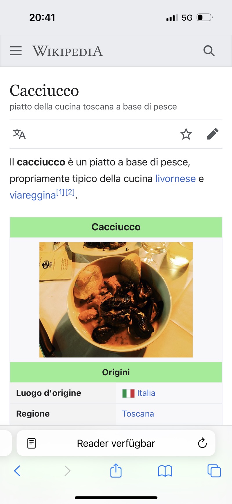 Im Stadtzentrum von Livorno genehmige ich mir, völlig erschöpft vom anstrengenden Tag, das für die Gegend um Livorno und Viareggio typische Regionalgericht Cacciucco, eine köstliche Fischsuppe mit Miesmuscheln.