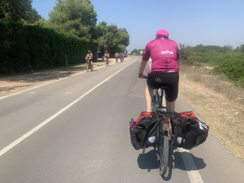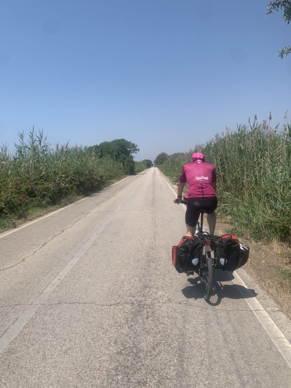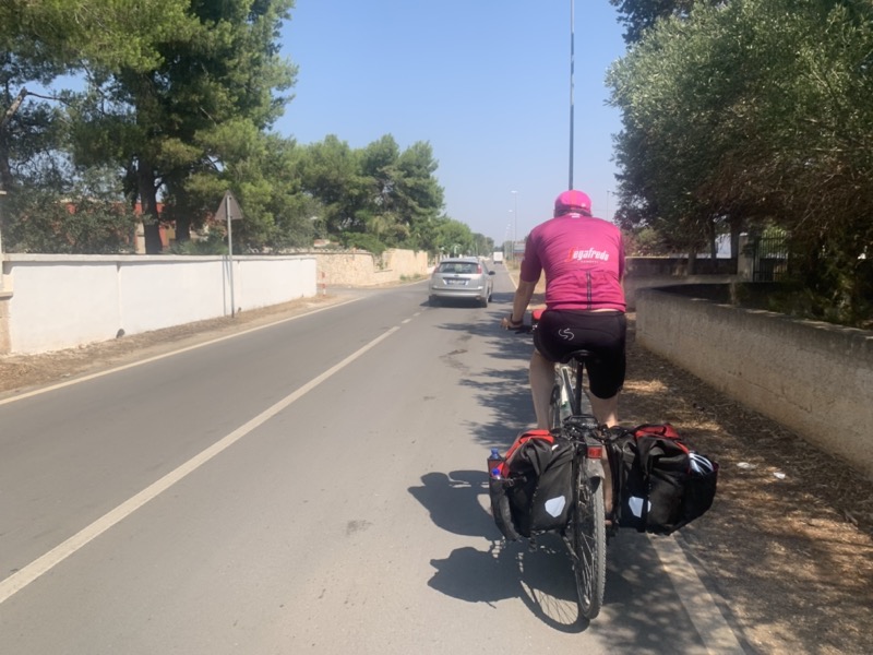 Die Straße wird nördlich von Porto Cesareo schmäler, ist aber Gott sei Dank nicht sehr stark frequentiert. Ein seltenes Bild tut sich auf: Andere Radfahrer!!!