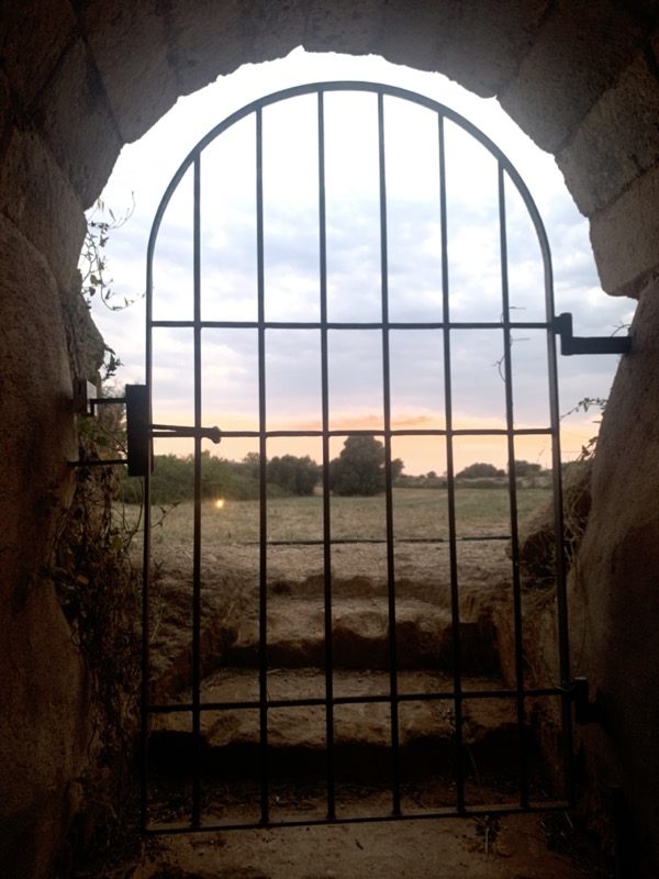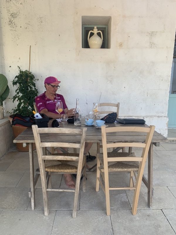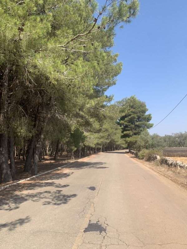 Von Torre Colimena zweigen wir in Richtung Avetrana ins Landesinnere ab. Dort können wir bei einem Brunnen unsere Flaschen auffüllen und haben auch noch einen anderen Grund, um eine Pause im Schatten zu machen….