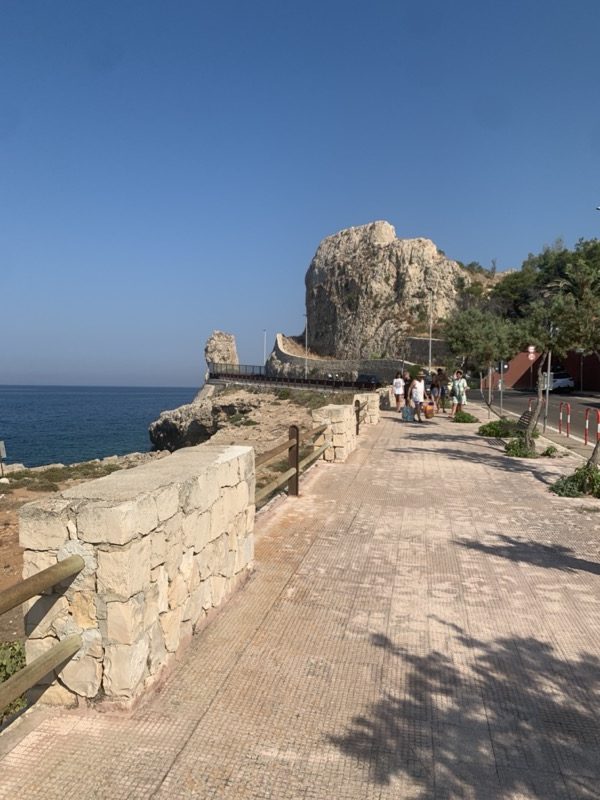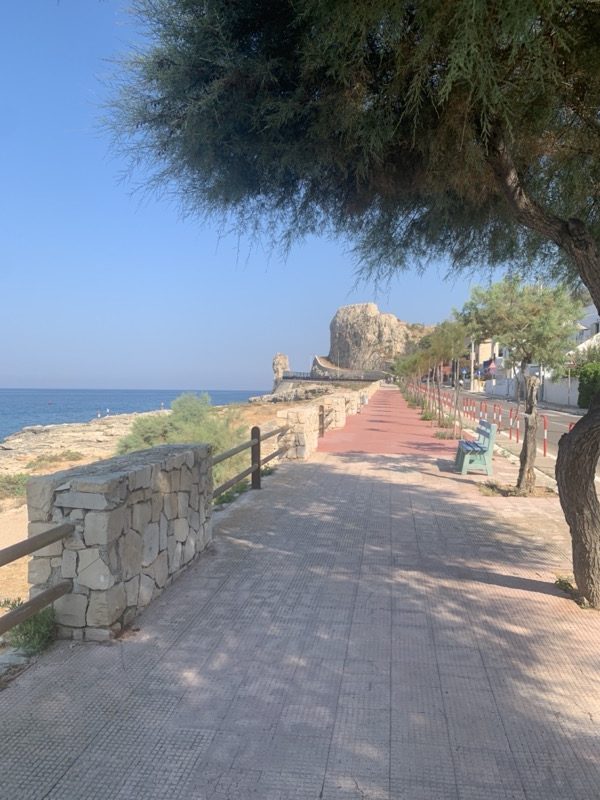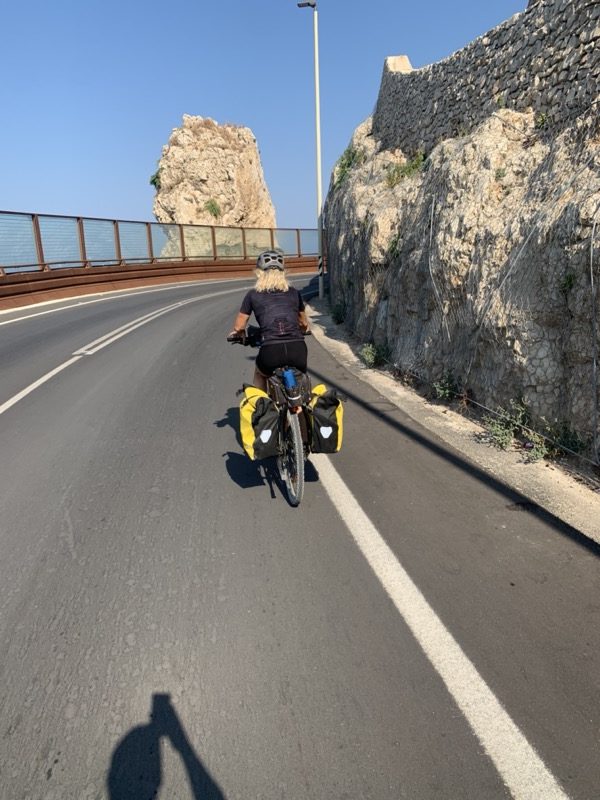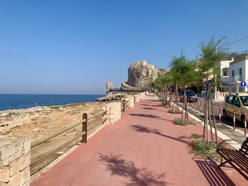In Lido Conchiglie nützen wir ein kurzes Stück Radweg und freuen uns über den imposanten Felsen, der eine Abwechslung im Landschaftsbild darstellt.