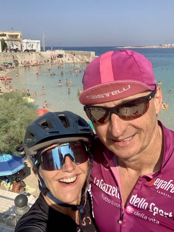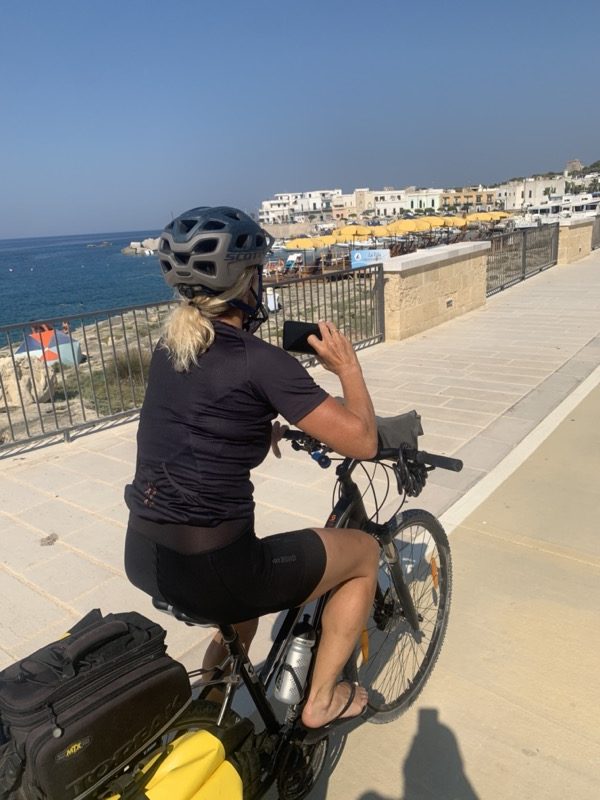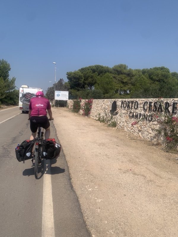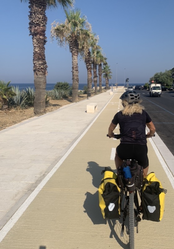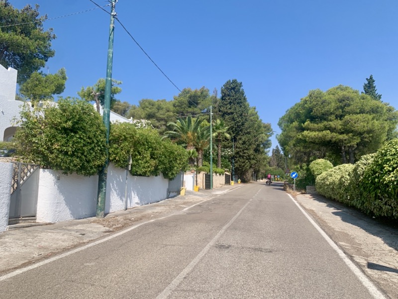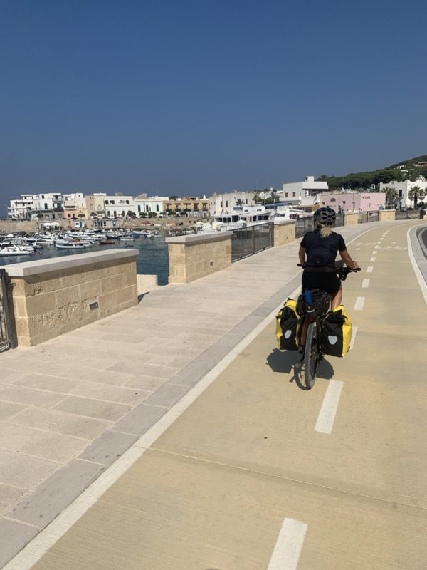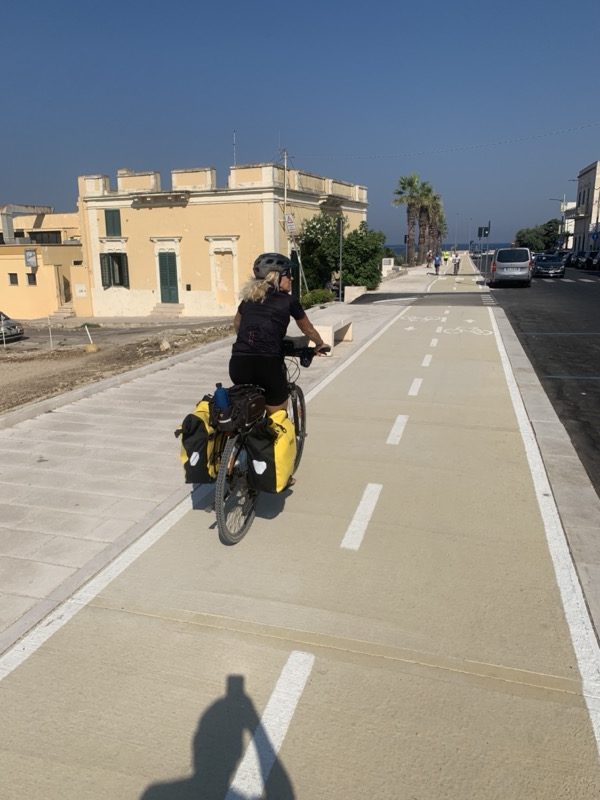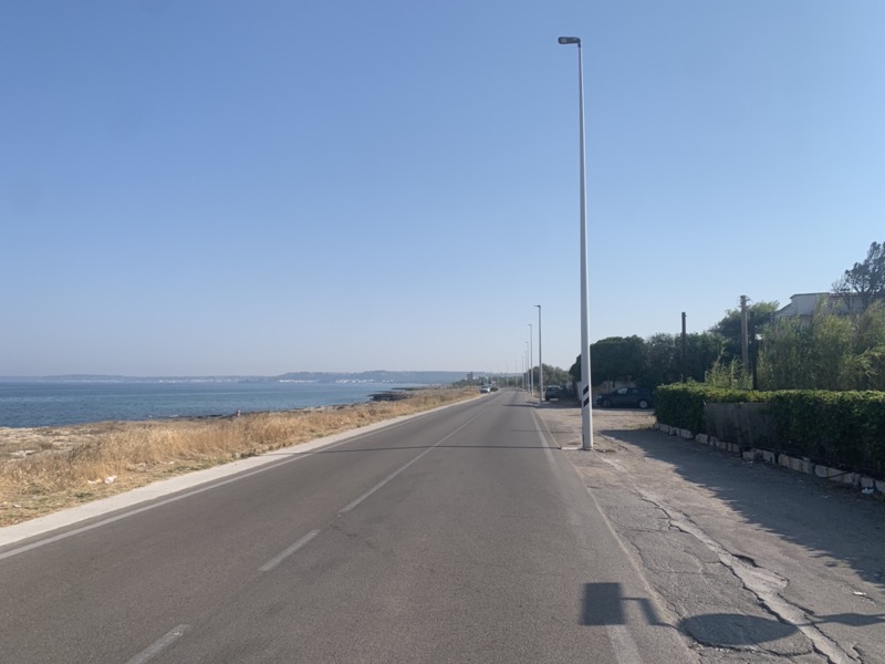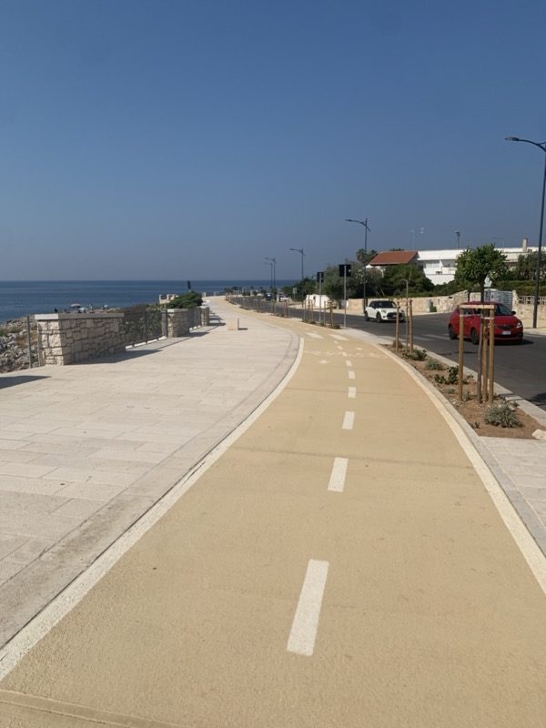Der Radweg zwischen Santa Maria al Bagno und Santa Caterina ist „eccezionalmente bella“, würde ich sagen… Auf creme-farbigen Asphalt geht es zweispurig am Meer dahin…