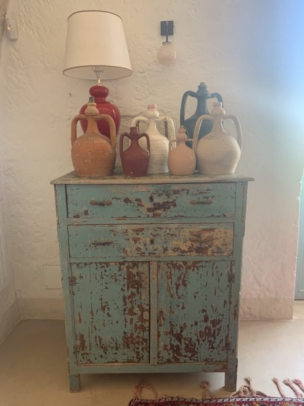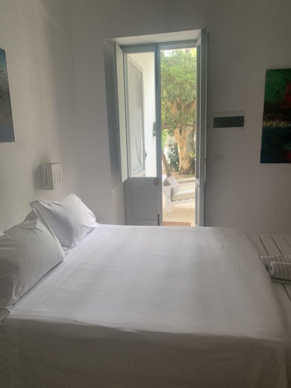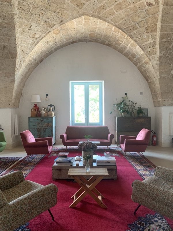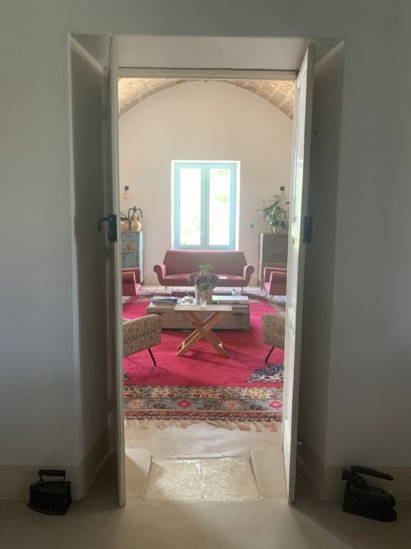 Nach einer Irrfahrt bei brütender Hitze und einer heftigen Auseinandersetzung aufgrund schwacher Nerven angesichts des lang andauernden Zuckerentzugs und der extremen Temperaturen, finden wir endlich die hart ersehnte Masseria Palombara. Einmal muss man in einer typisch apulischen Masseria übernachtet haben, denken wir uns und checken um 360,.- Euro für eine Nacht ein… Wir sind überwältigt von der geschmackvollen, stylischen Einrichtung und kommen aus dem Staunen und Schwelgen gar nicht mehr heraus (ich zumindest…). Es ist einfach ein Traum!!
