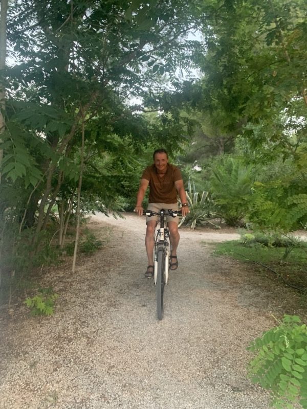 Wir nehmen das Rad, um durch das weitläufige Gelände zum Haupthaus zu gelangen.