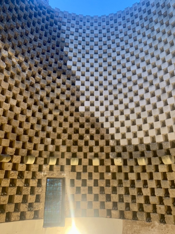 Vor dem Abendessen und bevor es dunkel wird, sehen wir uns noch den Taubenschlag an, der früher vom Feudalherren zur Haltung von Brieftauben, aber auch zur Produktion von wertvollem Dünger genutzt wurde.
