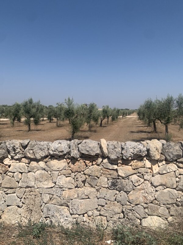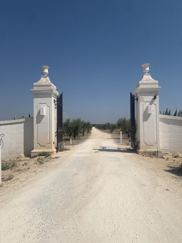 Auch weiter in Richtung Manduria zeigt sich dasselbe Bild… Wein und Oliven, soweit das Auge reicht! Ich liebe die vielfältigen Einfahrtsportale zu den Höfen und die Trockenmauern, die die einzelnen Grundstücke trennen…