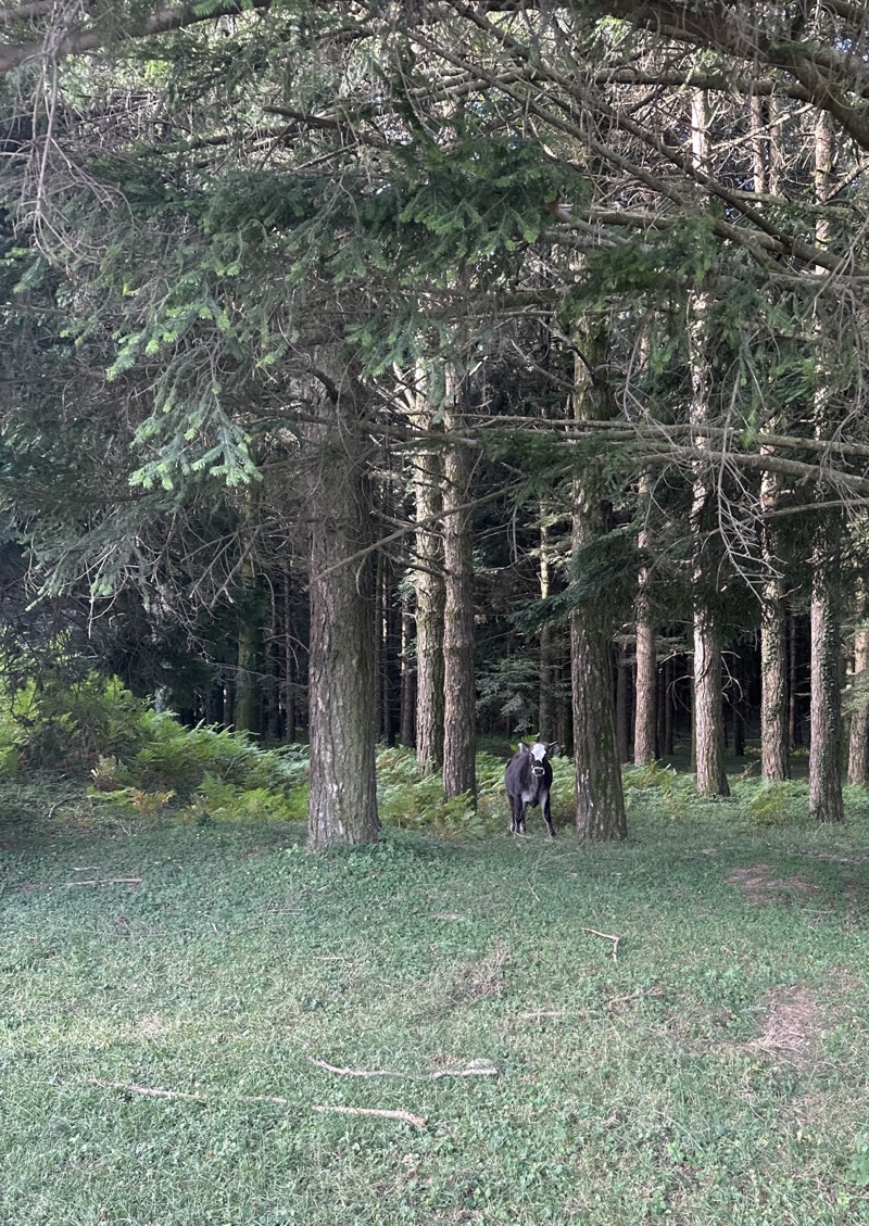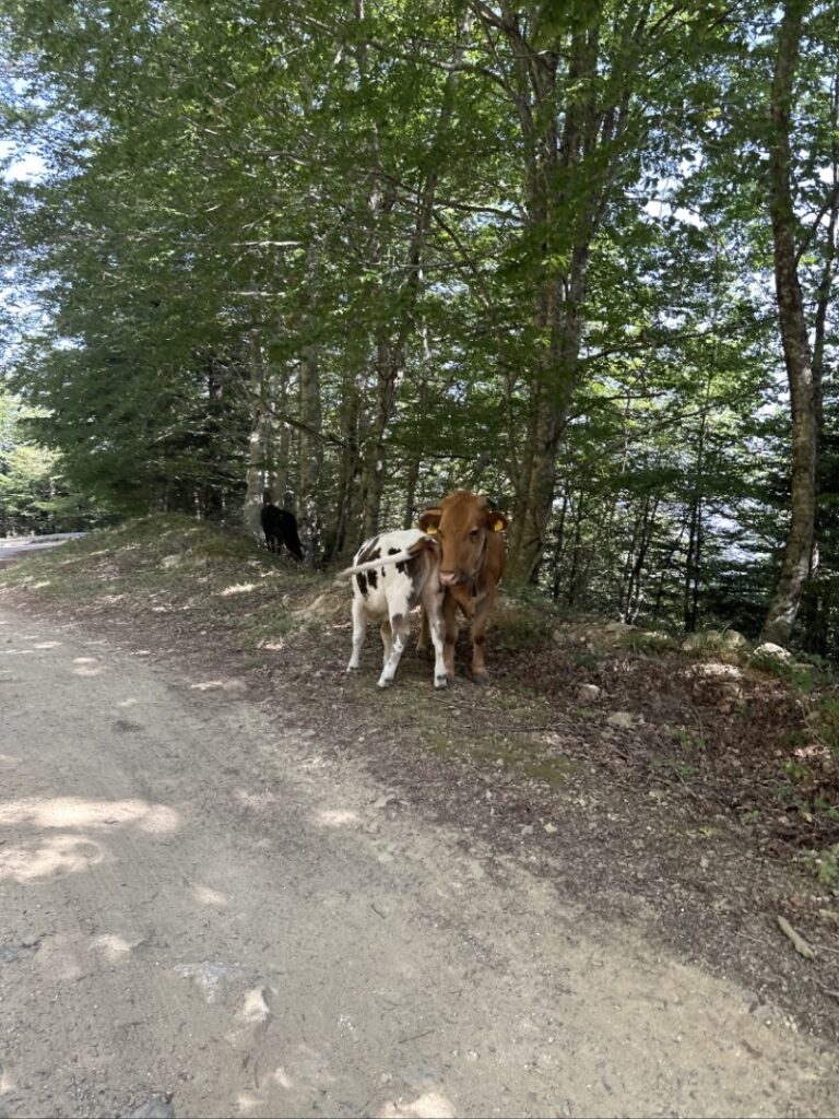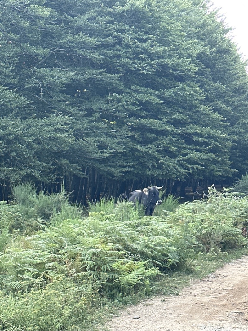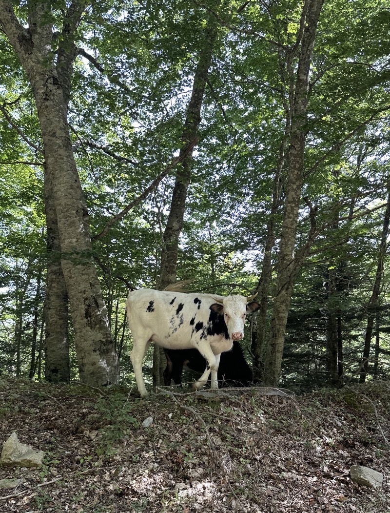 Immer wieder treffen wir auf freilaufende Rinder, die sich im Wald herumtreiben und sichtlich wohlfühlen.