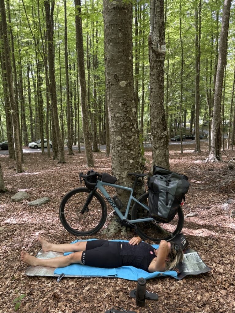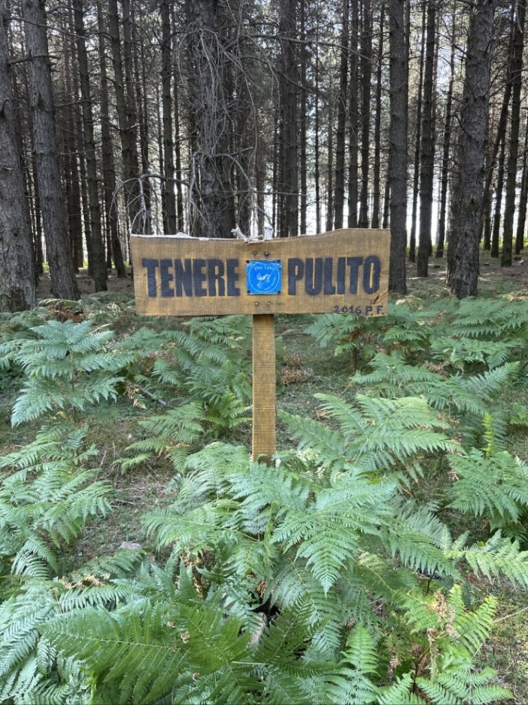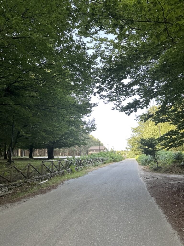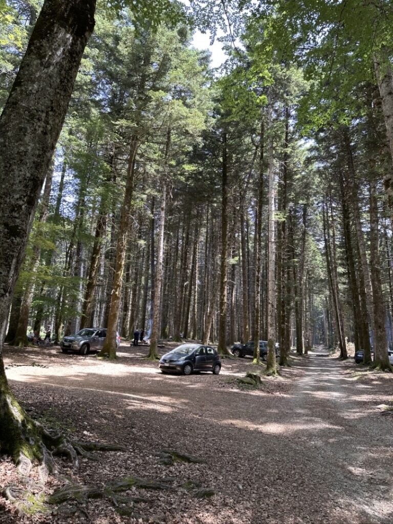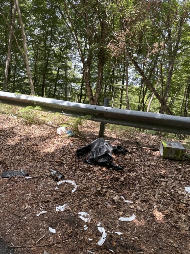 Wo Italiener (zumindest jene im Raum Reggio di Calabria) mit dem Auto hinkommen, da fahren sie auch hin. Kein Schritt wird unnötig zu Fuß gegangen, so unser Eindruck. Aus dem Auto werden Klappstühle und -tische, Decken und viel Jause ausgepackt und im Kreis der großen „famiglia“ verzehrt. Dabei legen anscheinend nicht alle viel wert auf sauberes Verlassen der Erholungsstätte, was der herumliegende Müll im Wald verrät.