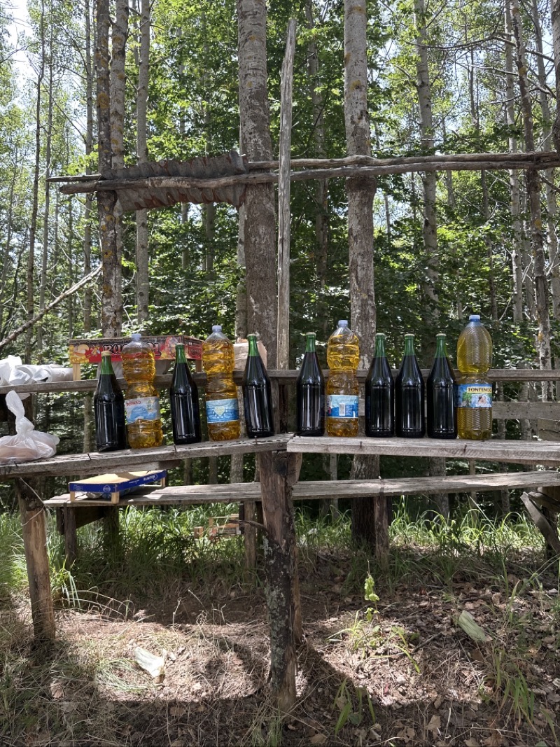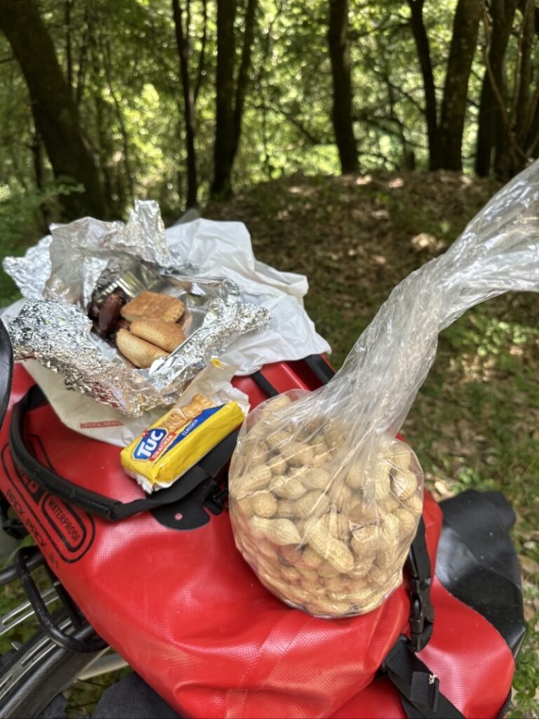 Bei einem weit abgelegenen Trinkbrunnen mitten im Wald herrscht reges Treiben. Angela und Severin aus Reggio di Calabria verkaufen Erdnüsse, Kräuter, Öl und Kartoffeln. Wir nehmen uns etwas überteuerte Erdnüsse mit und zehren noch lange davon…