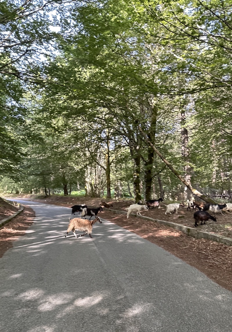 Eine Ziegenherde passiert unbeaufsichtigt die Straße…