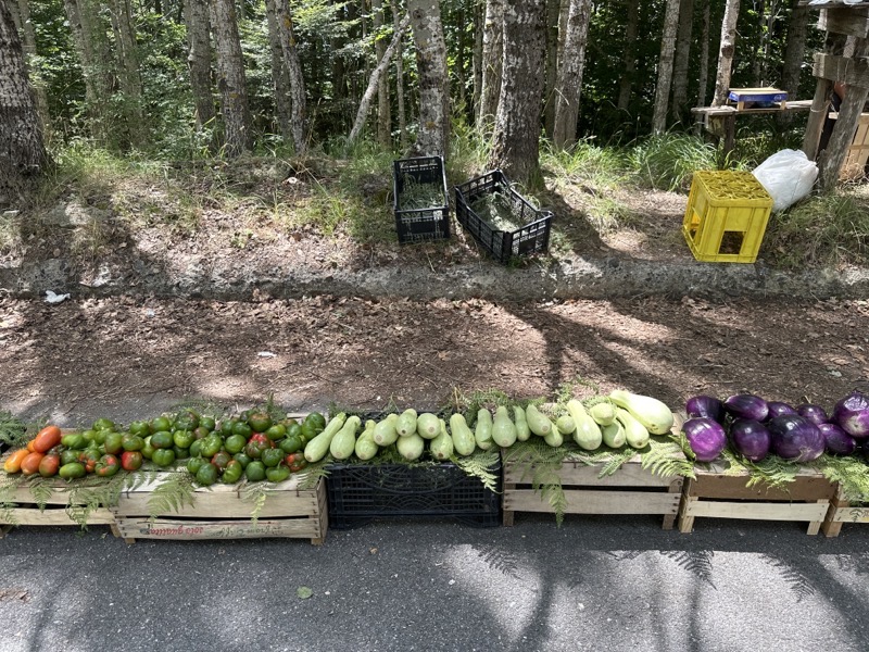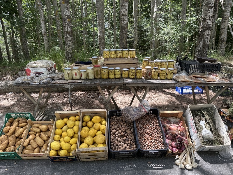 Vor der Ortschaft Gambarie verkaufen lokale Bauern und Hobbygärtner selbstgemachte Produkte wie Öl, eingelegtes und frisches Gemüse, Obst, Oliven, Nüsse und Honig.