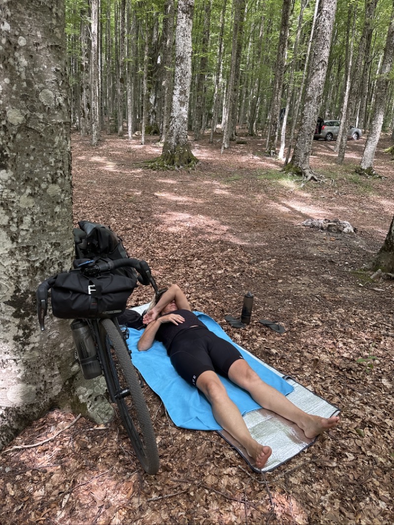 Schön langsam lichtet sich der Wald. Cosimos Frühstück und Ricas bzw. Giuseppes Cracker retten uns vor einem Schwächeanfall. GRAZIE MILLE!!!