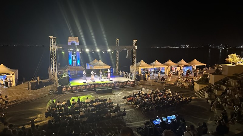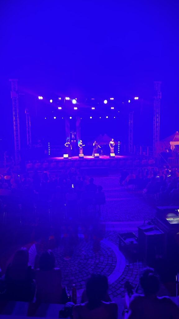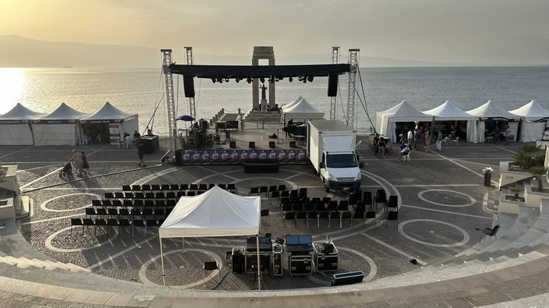Das „Incanto Quartett“ entspricht zwar nicht ganz unserem musikalischen Geschmack, aber die Location am „Stretto di Messina“, also der Straße von Messina mit Blick auf die gleichnamige Stadt auf der Insel Sizilien ist schon Spektakel genug.