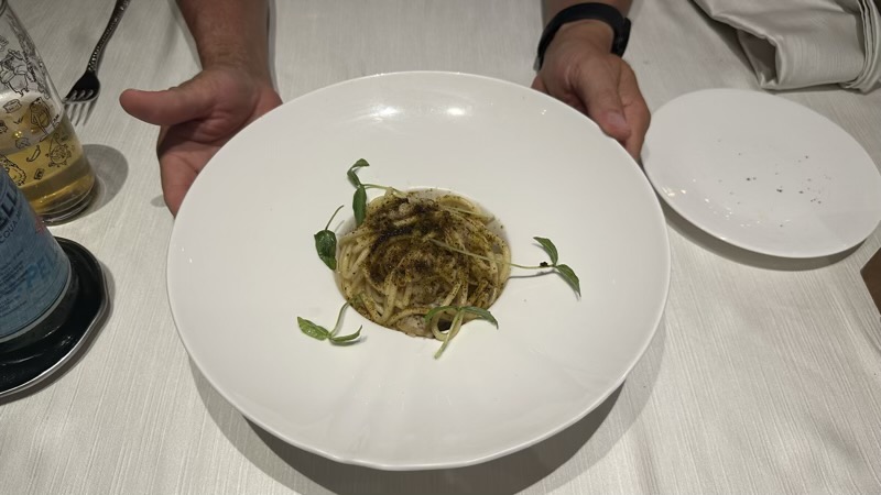 In einem der Hotelrestaurants legen wir eine wohlverdiente Mittagspause ein.