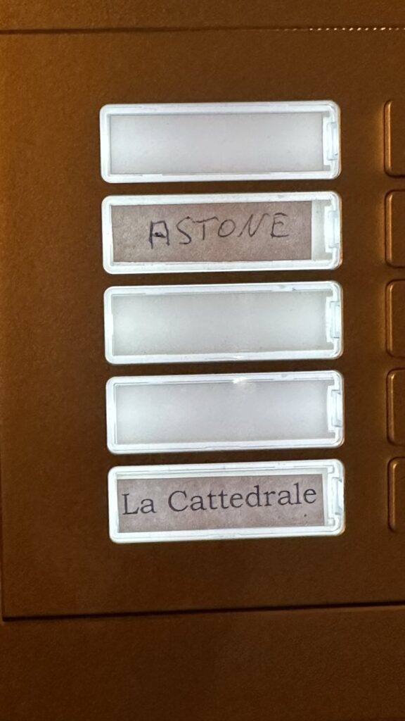 Unser zwar nettes Quartier „La Cattedrale“ ist wie schon gesagt nicht leicht zu finden, da das winzige Türschild an der Glocke der einzige Hinweis für ihre Existenz ist. Der Eigentümer klingt sehr sympathisch, allerdings haben wir ihn nie zu Gesicht bekommen…