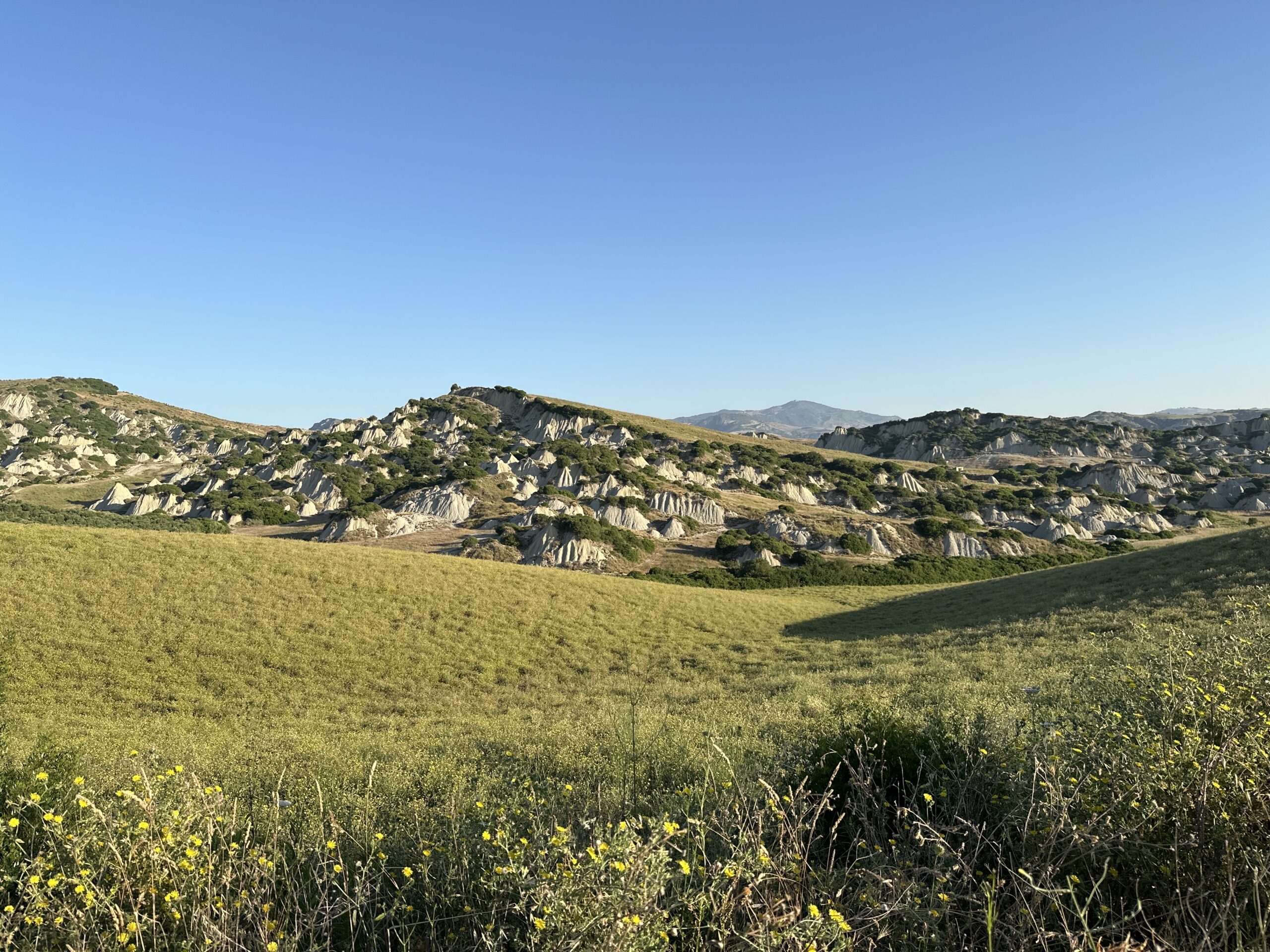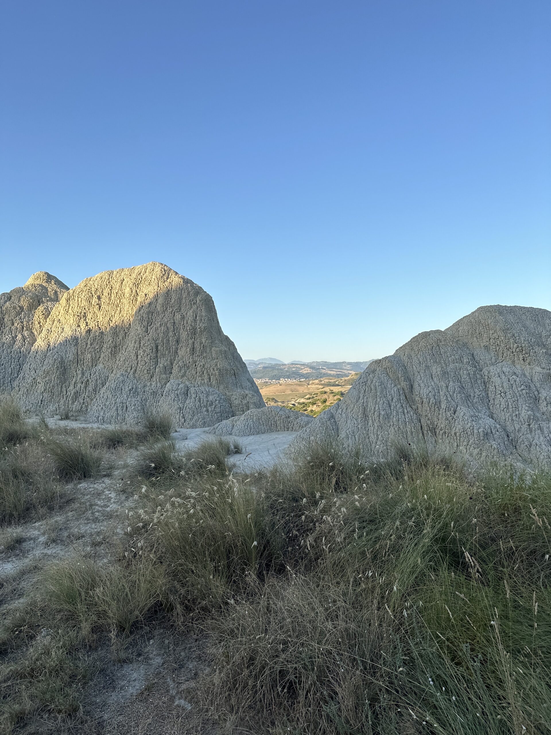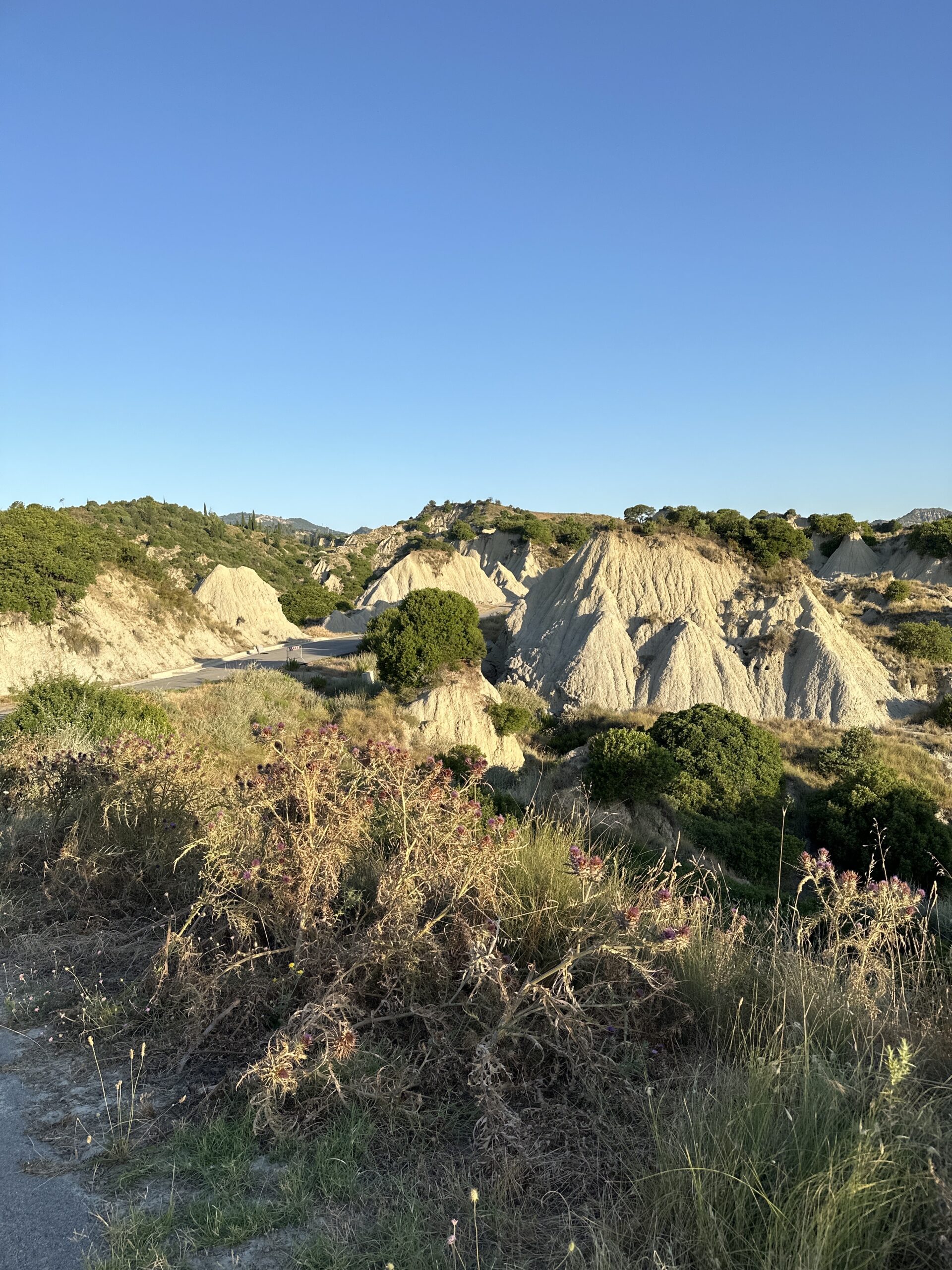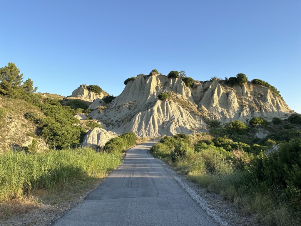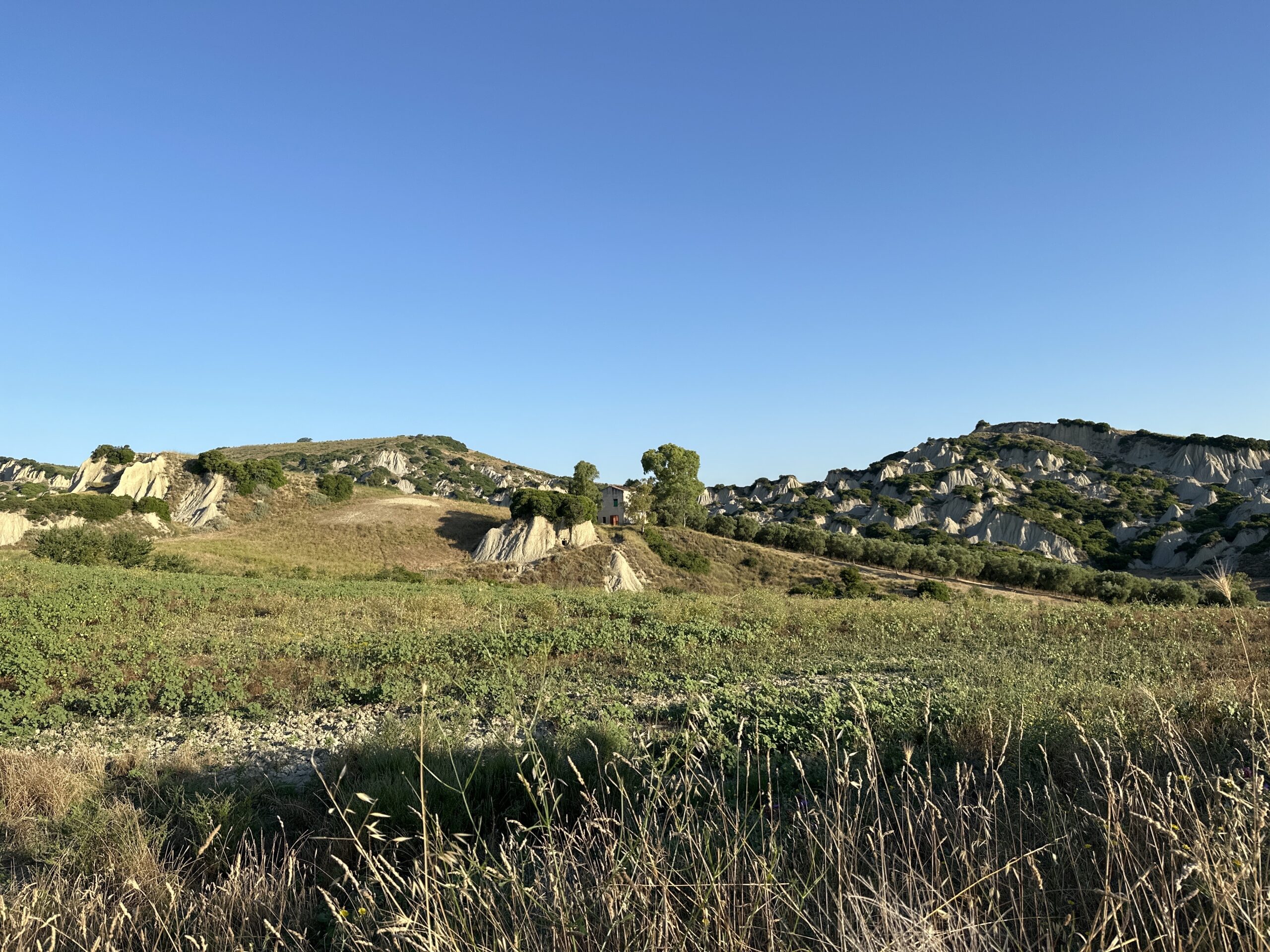Schweren Herzens verlassen wir Aliano und begeben uns in die nahegelegene Gegend der bizzarren Landschaftsform der Calanchi (Felsformationen aus Kalk, Lehm, Sand und Ton).